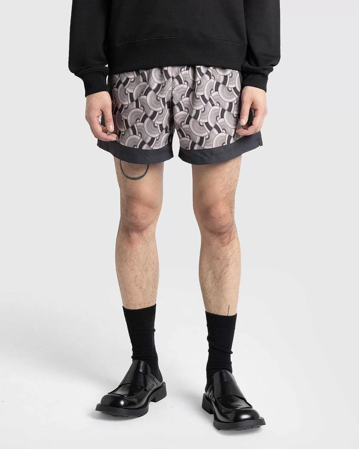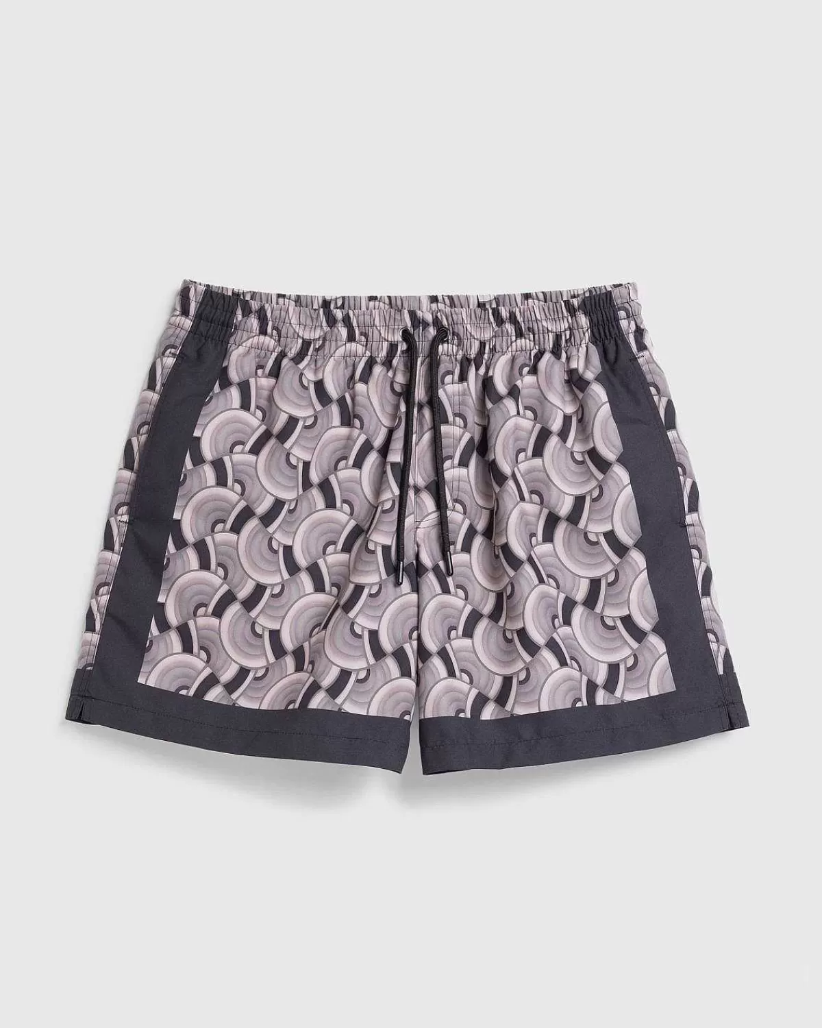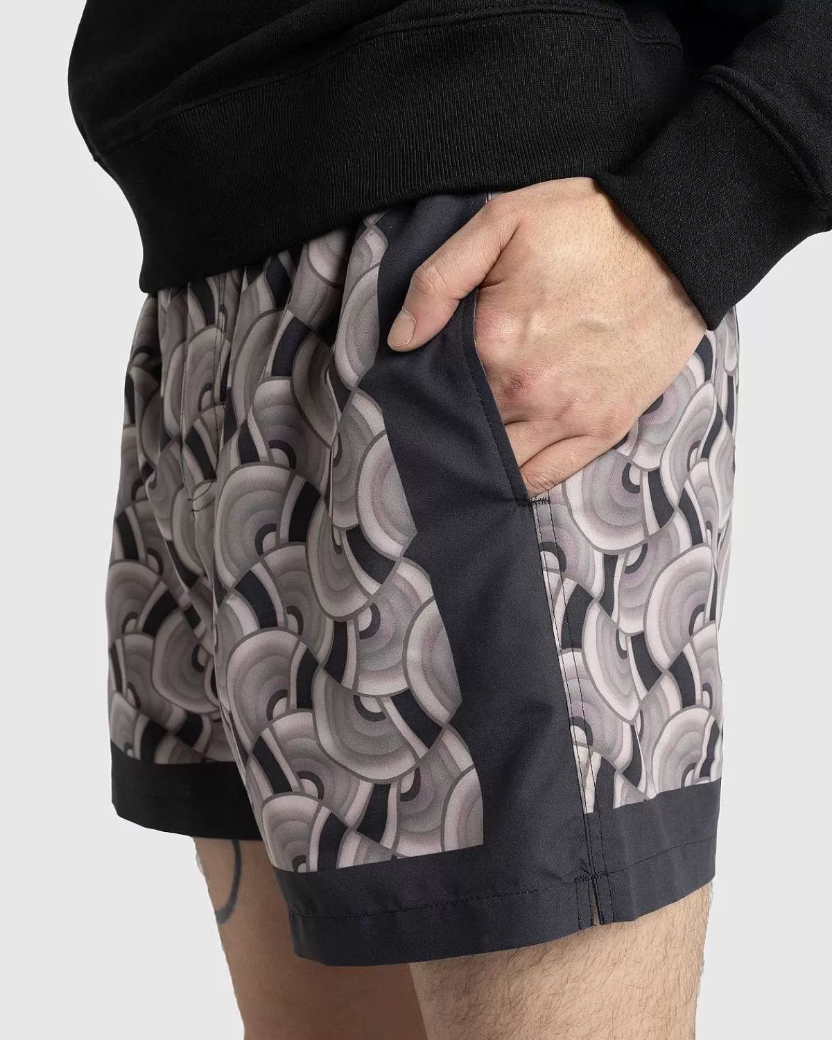 Badebukser Er Ikke Længere Strengt Forbeholdt Vandaktiviteter, Da Nylonshorts Er Blevet Mere Og Mere Populære Til Hverdagsbrug. Dries Van Noten Leverer Et Friskt Par Til Den Nye Sæson, En Stil Pyntet Med Et Fængslende Grafisk Tryk. Svømmeshortsene Er Lavet Af Nylon Og Har En Elastisk Linning Med En Integreret Snøre Samt Sidelommer. Dvn Er En Mester I Kunstfærdige Prints Og Mønstre, Aldrig Mere Tydelige End Med Phibbs-Designet.