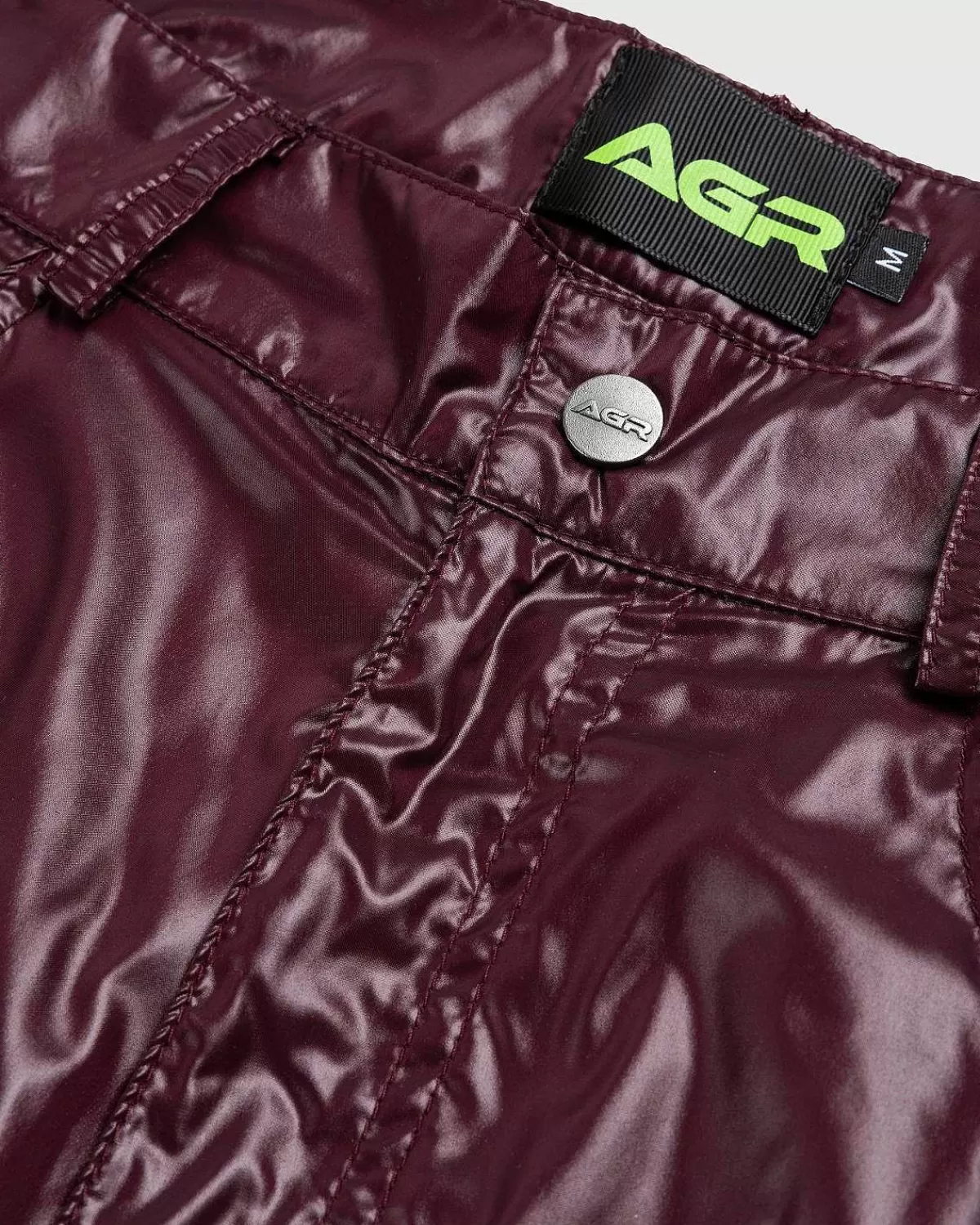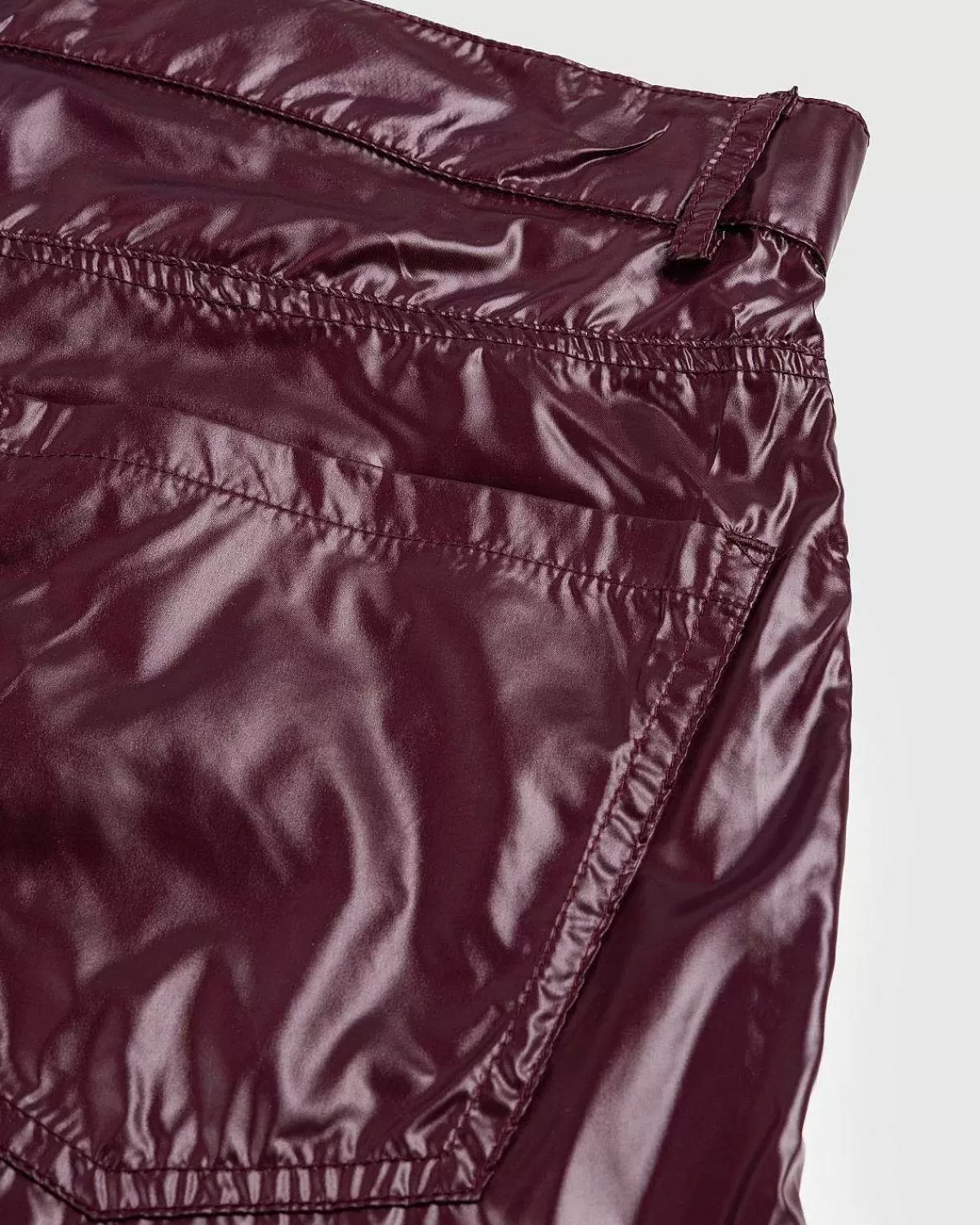 Det Blanke Nylonmateriale I Disse Bukser Oversættes Til Et Læderlignende Look For En Iøjnefaldende Stil. Buksen Ankommer I En Lilla Farvevariant Og Har En Traditionel Konstruktion Med Fem Lommer, Med Knaplukning, En Lynlåsgylp Og Bælteløkker I Taljen. Pasformen Er Skåret Efter Størrelse Med Et Bredt Ben.
