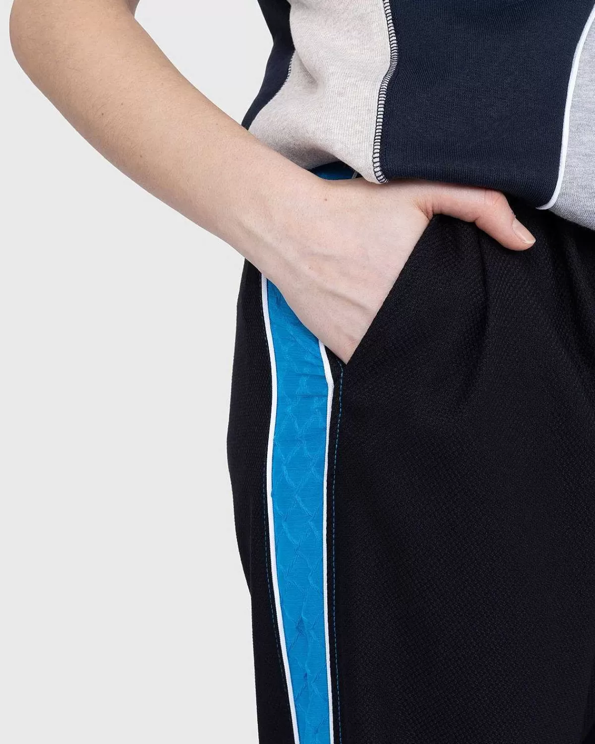 Siden Lanceringen I 2018 Er Ahluwalia Blevet Kendt For At Lave Unikke Patchworkede Beklædningsgenstande, Der Blander Designerens Arv Med Vintage Og Forskellige Tekstiler. For Sin Seneste Kollektion Kommer Ahluwalia Igennem Med Et Par Lette Bukser Til Både Formelle Og Afslappede Omgivelser. Bukserne Har Plisseringer Foran Sammen Med Side- Og Baglommer Og Er Afsluttet Med Kontraststriber Svarende Til Mærkets Signaturdesign.