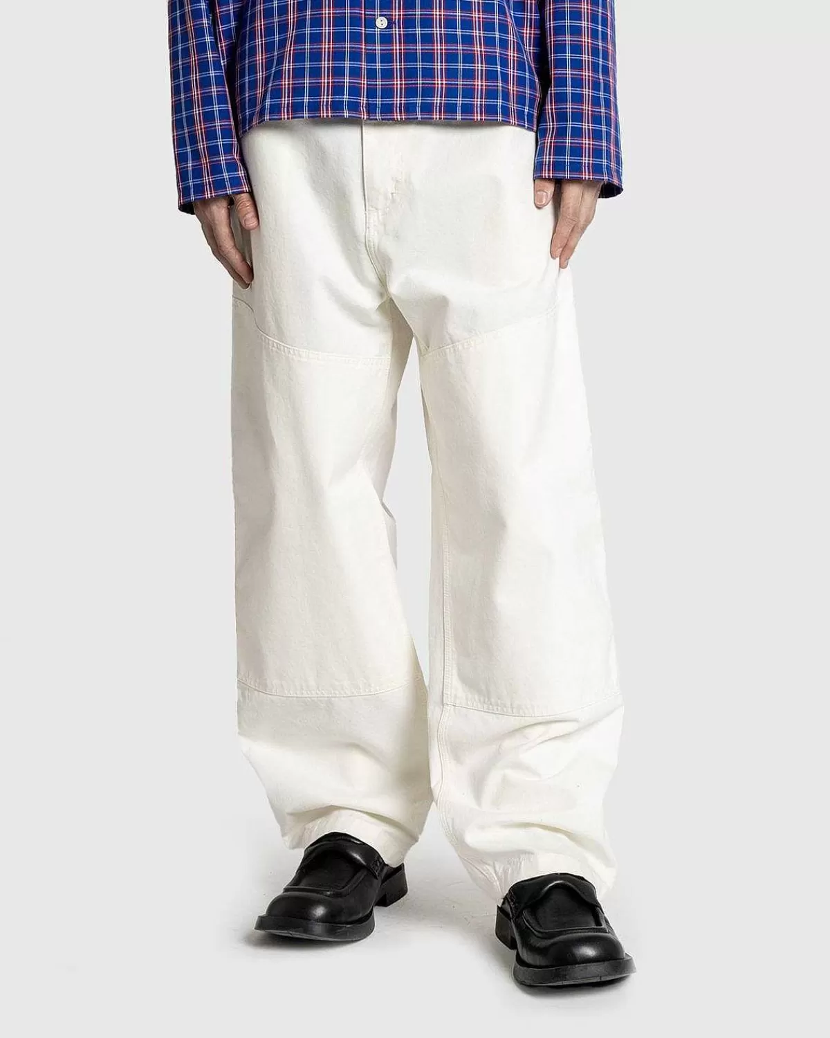 Når Den Ankommer I En Ren Lys Farvevariation, Defineres Den Brede Panelbuks Af Sine Brede, Kantede Paneler Ved Knæet, Som Tilføjer Forstærkning Og Peger På Klassiske Arbejdstøjstilarter. Parret Er Produceret I Et Mellemvægts Bomuldsstof, Der Er Tredobbelt Syet Og Detaljeret Med Værktøjslommer Og En Hammerløkke. Buksen Har En Løs, Voluminøs Pasform For En Ekstra Komfortabel Og Moderigtig Brug.
