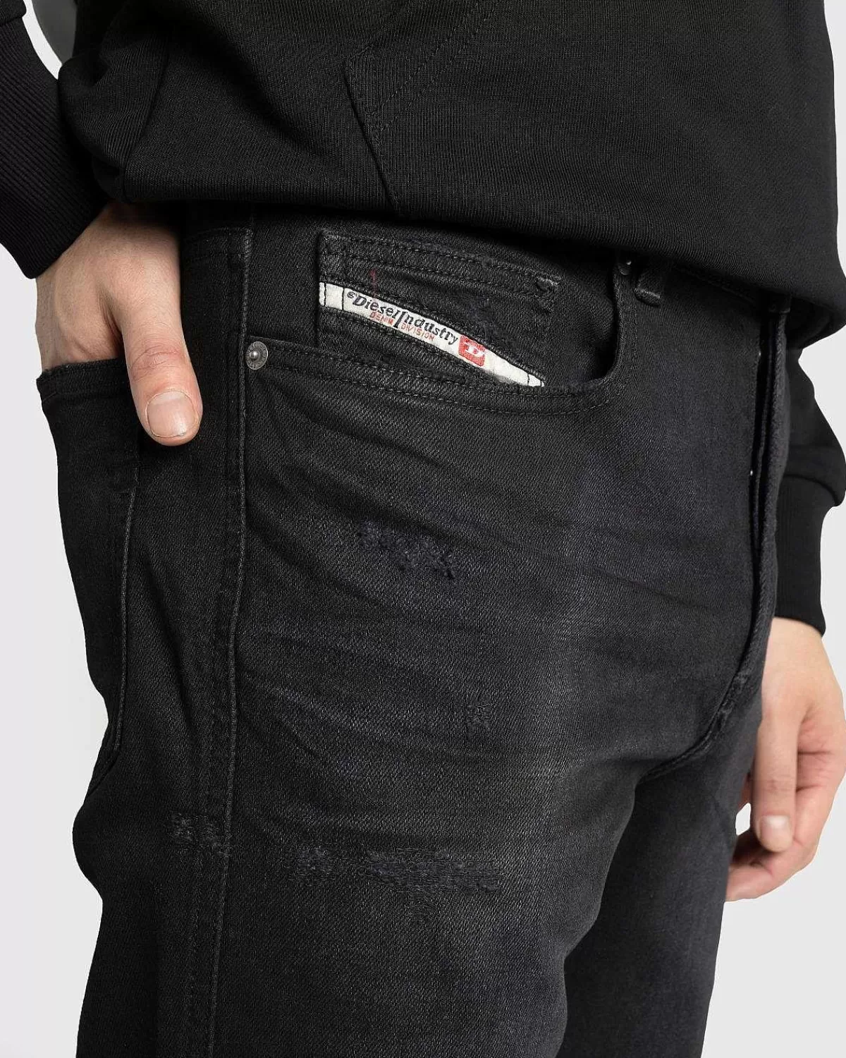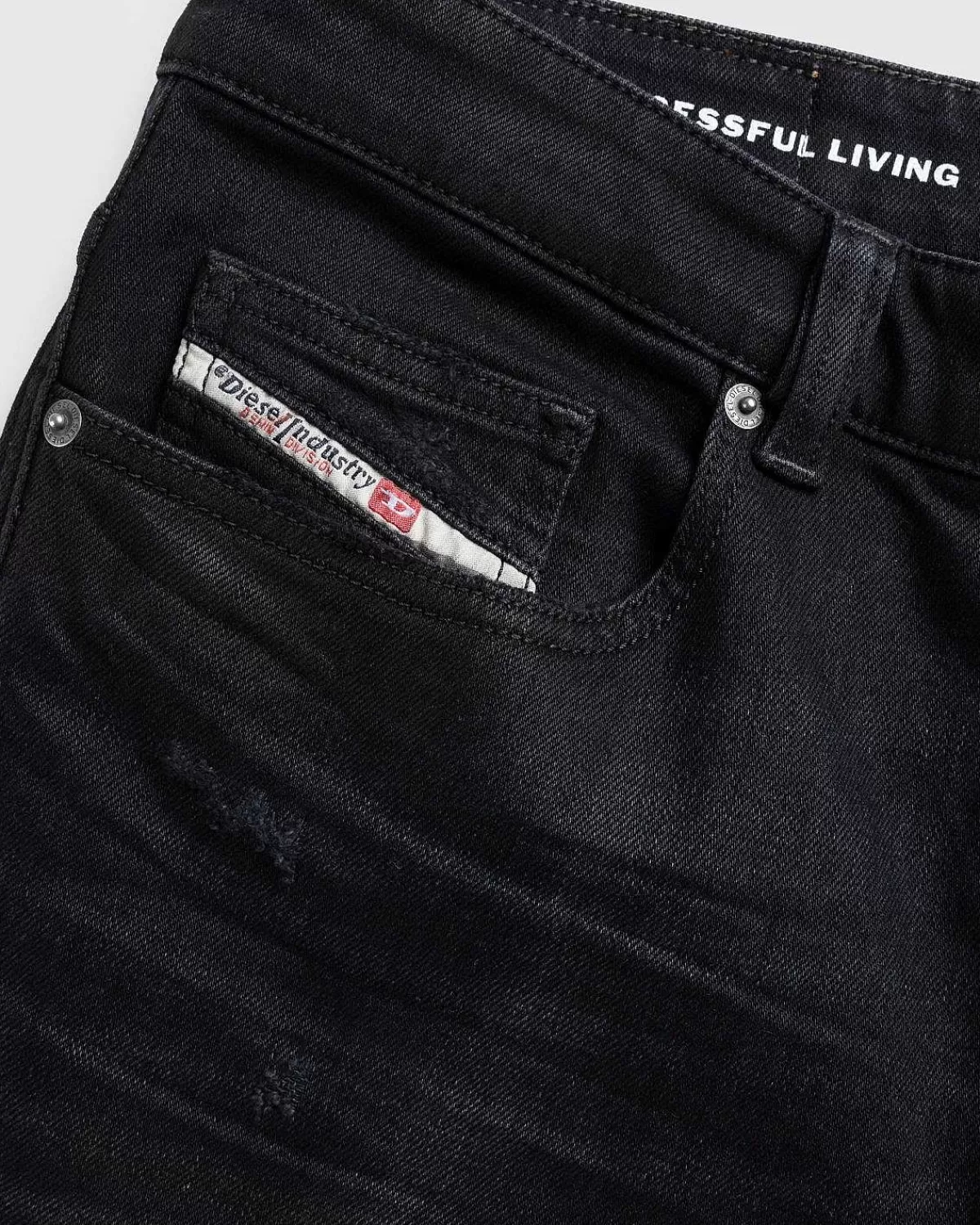 Som Navnet Antyder, Trækker D-Buck Fra 1998 Fra Vintage Denim-Stile, Alt Sammen Med En Lidt Bredere Kant Til Et Moderne Twist. Parret Er Skåret Til En Slank Pasform Med En Mellemtalje Og Et Støvleskåret Ben, Hvilket Sikrer Et Markant Look. Traditionelle Designelementer Omfatter Fem-Lommes-Styling, En Knapgylp Og Bælteløkker I Taljen. Denimen Er Afsluttet Med Et Diesel-Logomærke Påført Bagpå Taljen.