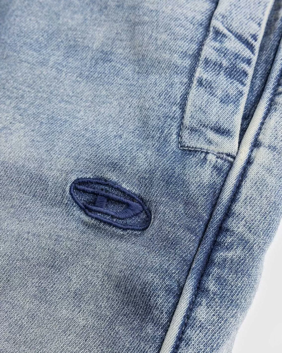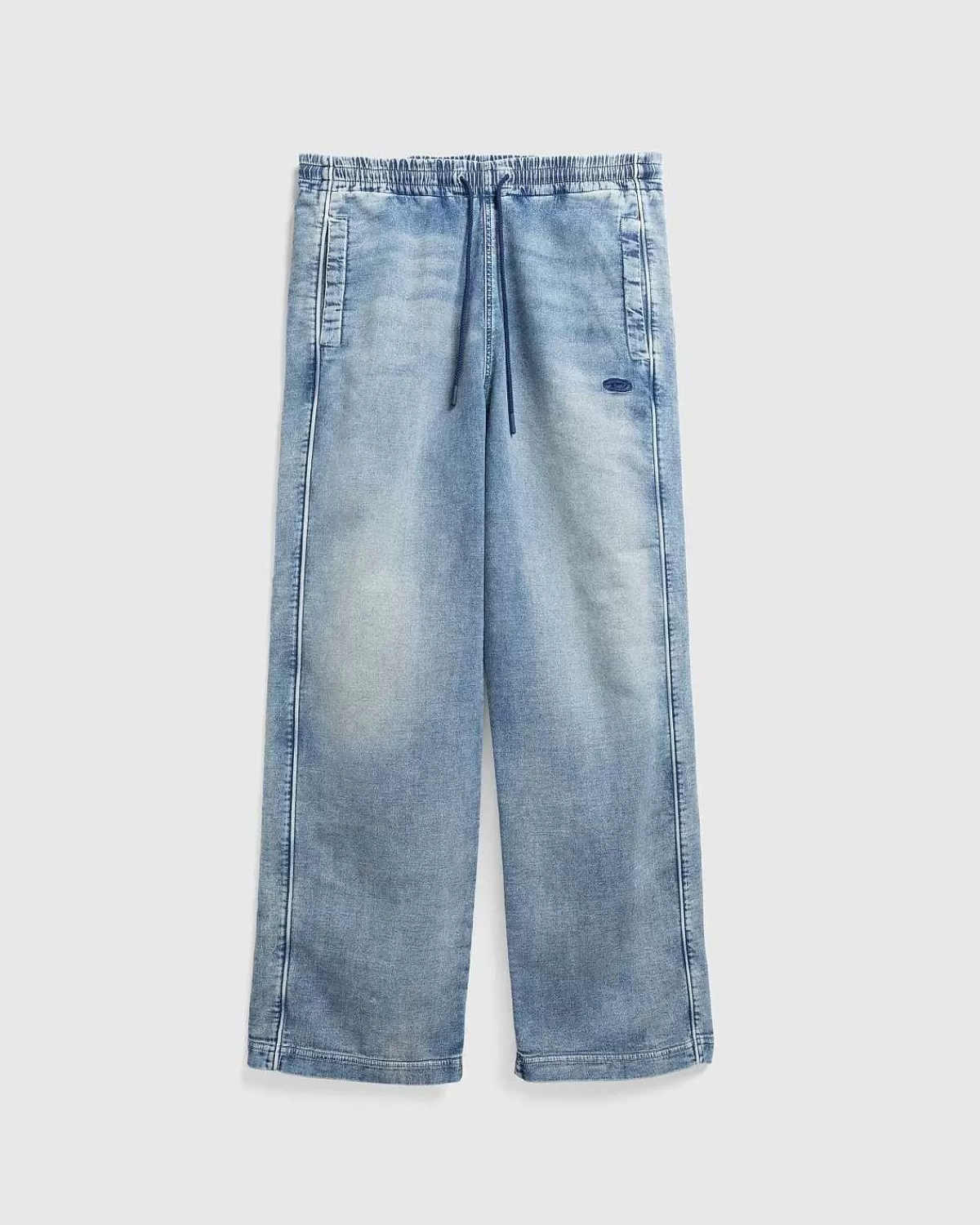 Del Track Pant Del Denim, D-Martians Er En Unisex-Stil Med En Lyseblå Vask, Medium Behandlet For Et Autentisk Vintage-Look. Silhuetten Er Skåret Til En Løs Pasform Med Et Lige Ben, Udstyret Med En Elastisk Talje Og En Justerbar Snøre For Optimal Komfort. Store Lommer Er Implementeret På Forsiden Af Parret, Med En Enkelt Welt Lomme Indbygget På Bagsiden. Mærkets Oval D-Logo Er Påført Forsiden For At Mærke Designet På En Subtil Måde.