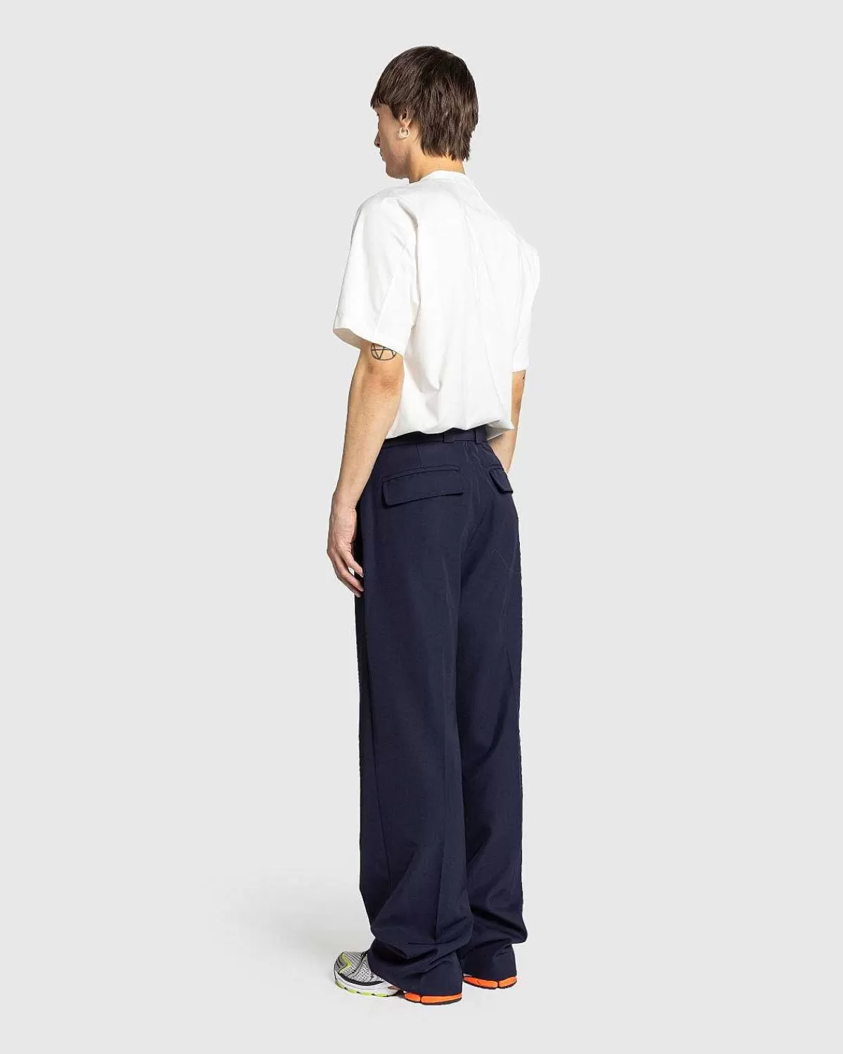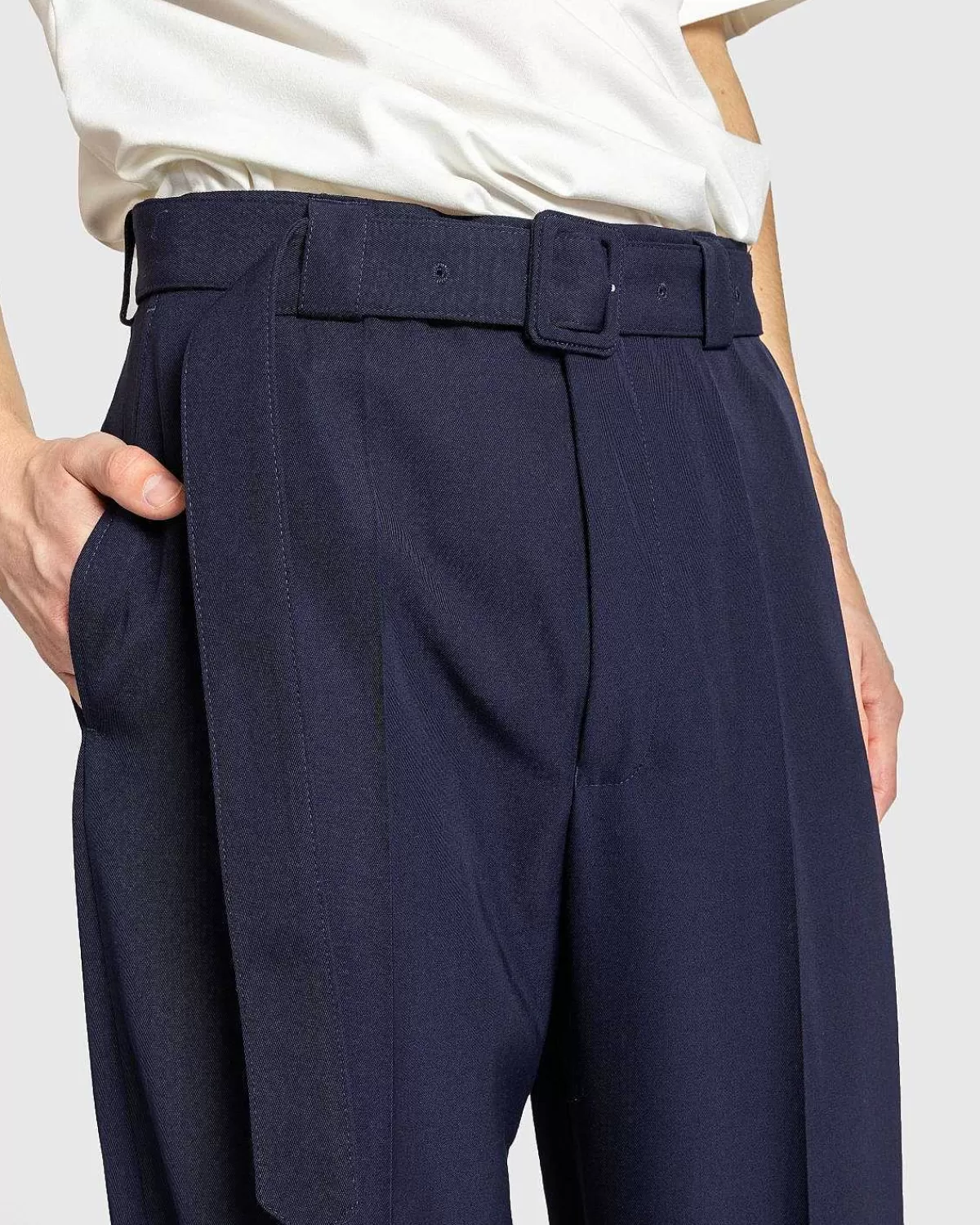 Paulson Er En Signatur Af Dries Van Noten-Buksestil, Der Ankommer Til Den Nye Sæson I En Alsidig Marinefarve. Skåret Til En Afslappet, Lige Benpasform, Parret Er Produceret I Et Polyester-Uld-Blandingsstof Og Er Uforet. Underdelene Har Sidelommer Til Hånden Samt Baglommer Med Klap Og Kommer Med Et Matchende Spændebælte.