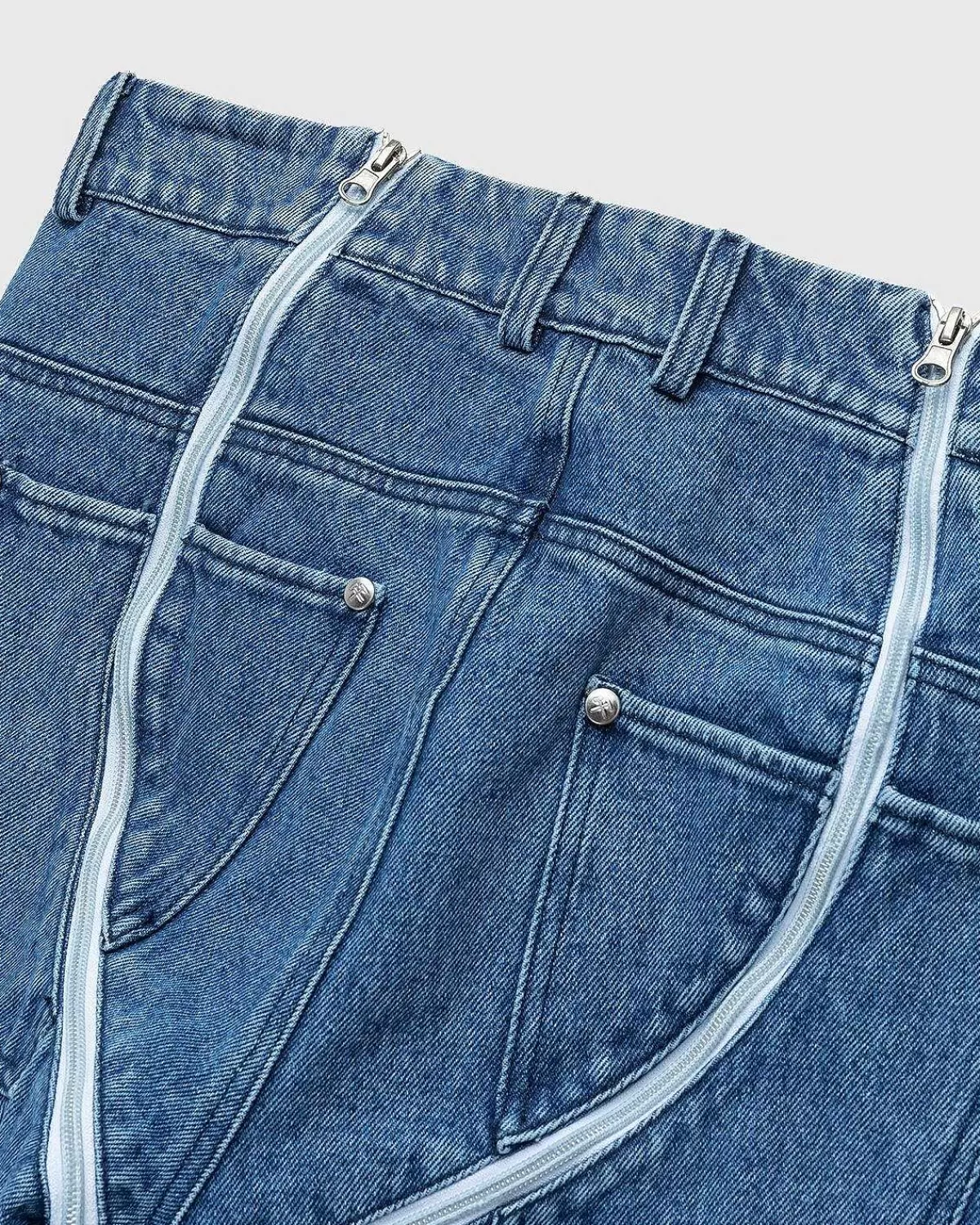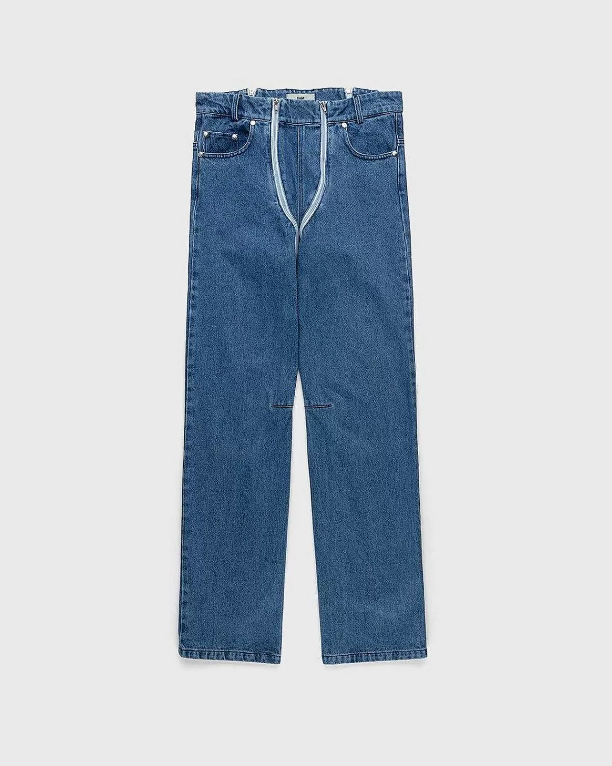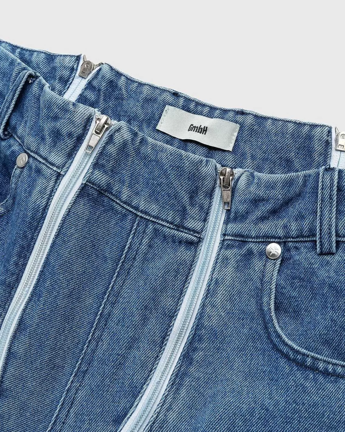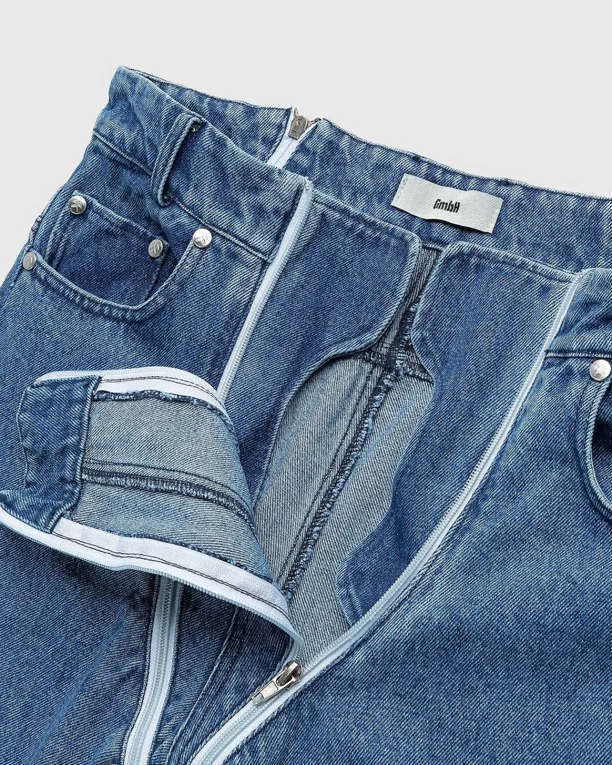 Lata-Bukserne Er Kendetegnet Ved En Af Gmbhs Signaturdesigndetaljer: Udsatte Dobbelte Lynlåse, Der Her Løber Forfra Og Hele Vejen Til Bagsiden Af Silhuetten. En Moderniseret Og Forhøjet Udgave Af De Klassiske Blå Jeans, Denim-Stilen Er Produceret I 100 % Økologisk Bomuld, Med 5-Lommers Styling Og Bælteløkker I Taljen. Dette Særlige Par Er Lavet Til Alle Og Enhver, Som Med Mange Designs Fra Det Berlin-Baserede Mærke, Er Det Unisex For At Øge Alsidighed.