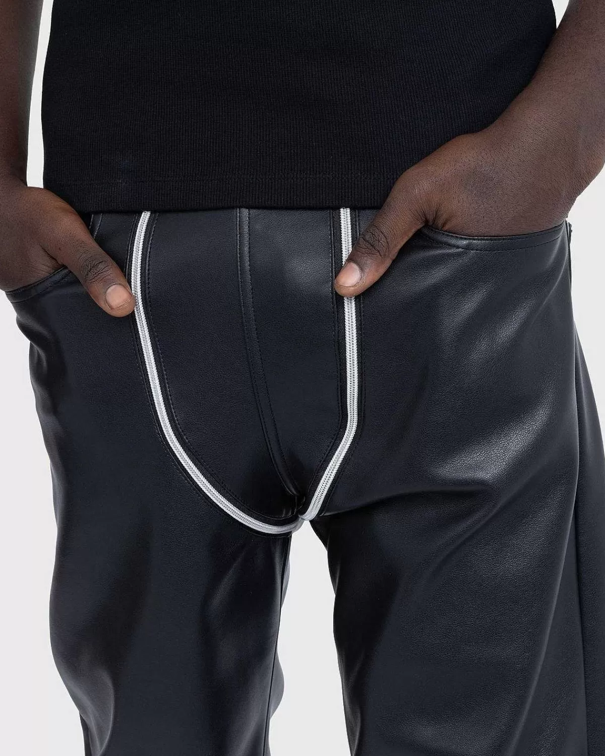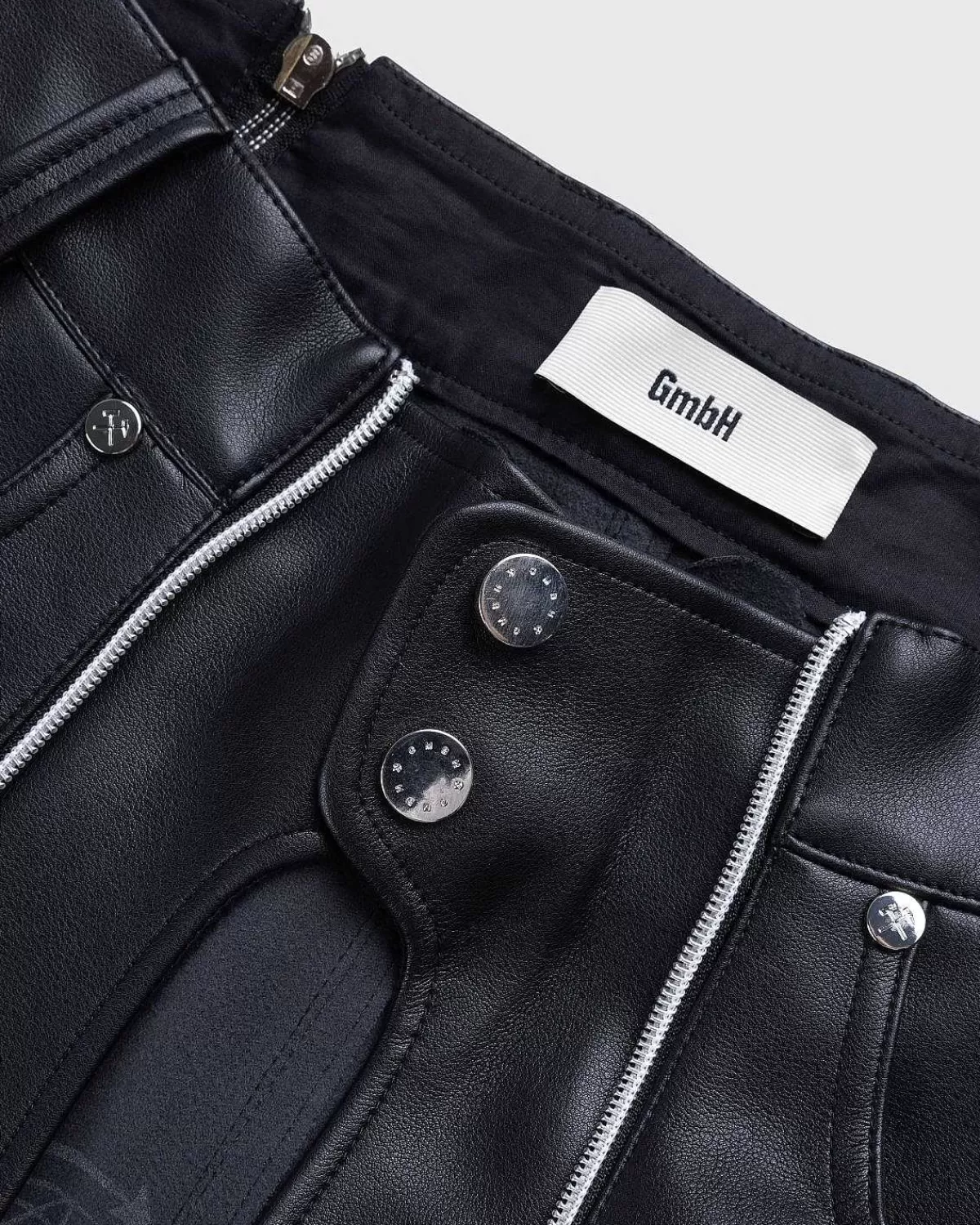Denne Sæson Er Gmbh Tilbage Med Et Nyt Udvalg Af Avancerede Stilarter, Der Ser Ud Til At Være Lige Ud Af Matrixen. Stykker Som Lata Pleather-Bukserne Er Unisex Og Perfekte Til At Lave Et Statement. De Veganske Læderunderdele Er Fremstillet Af Deadstock-Polyurethan Og Skiller Sig Ud Med Polariserende Dobbeltlynlåse, Der Strækker Sig Fra Forsiden Til Bagsiden.