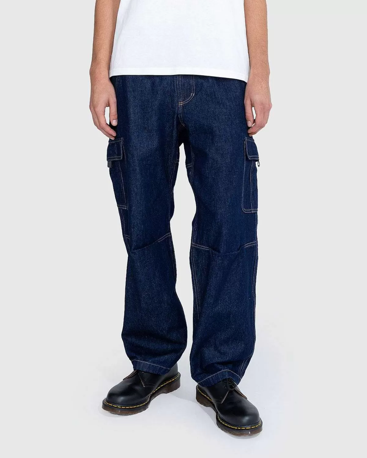Som Med De Fleste Gramicci-Bukser Er Lastbundene Designet Til At Bevare Funktionaliteten Under Klatring Og Andre Eventyrlige Aktiviteter. Dette Særlige Par Er Produceret I Et Bomuldsdenimmateriale For Et Mere Livsstilsspecifikt Look. Skåret I En Løs Pasform Har Bukserne Masser Af Plads Til At Holde Kort, Kuglepenne Og Andre Udendørs-Relaterede Materialer, Mens Karabinhager Bekvemt Kan Fastgøres Til Det Indbyggede Webbælte.