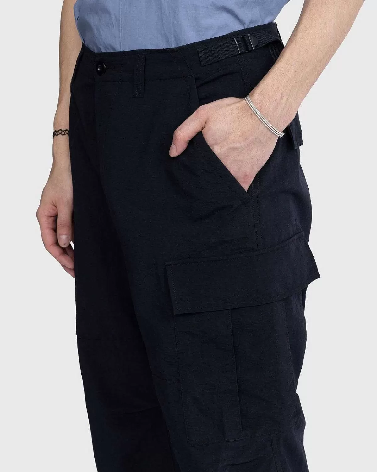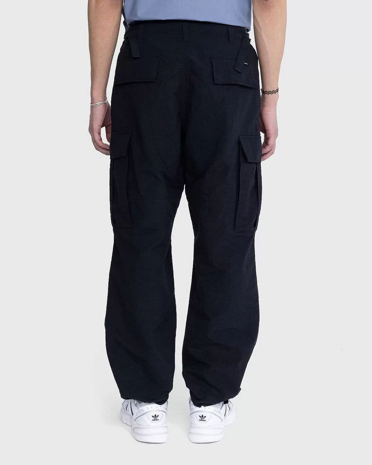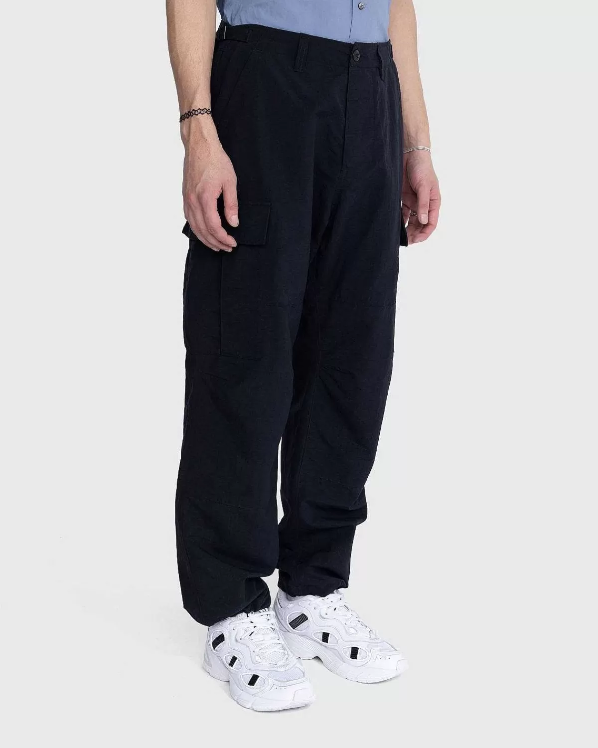 Disse Cargo-Bukser Er Kendetegnet Ved Deres Holdbarhed, Idet De Er Konstrueret Af Japansk Ripstop-Nylonstof. Parret Har En Tekstureret Finish Og Er Forstærket Med Et Dobbelt Lag Stof Ved Knæene Og Bagsædet. Spænder I Taljen Giver Dig Mulighed For At Opnå En Mere Præcis Pasform, Mens Ankelsnore Lader Dig Justere Formen Yderligere. De Slidstærke Underdele Er Derefter Færdige Med Knap-Ned-Last Og Baglommer, Med En Lille Highsnobiety-Vævet Etiket På Højre Baglomme.