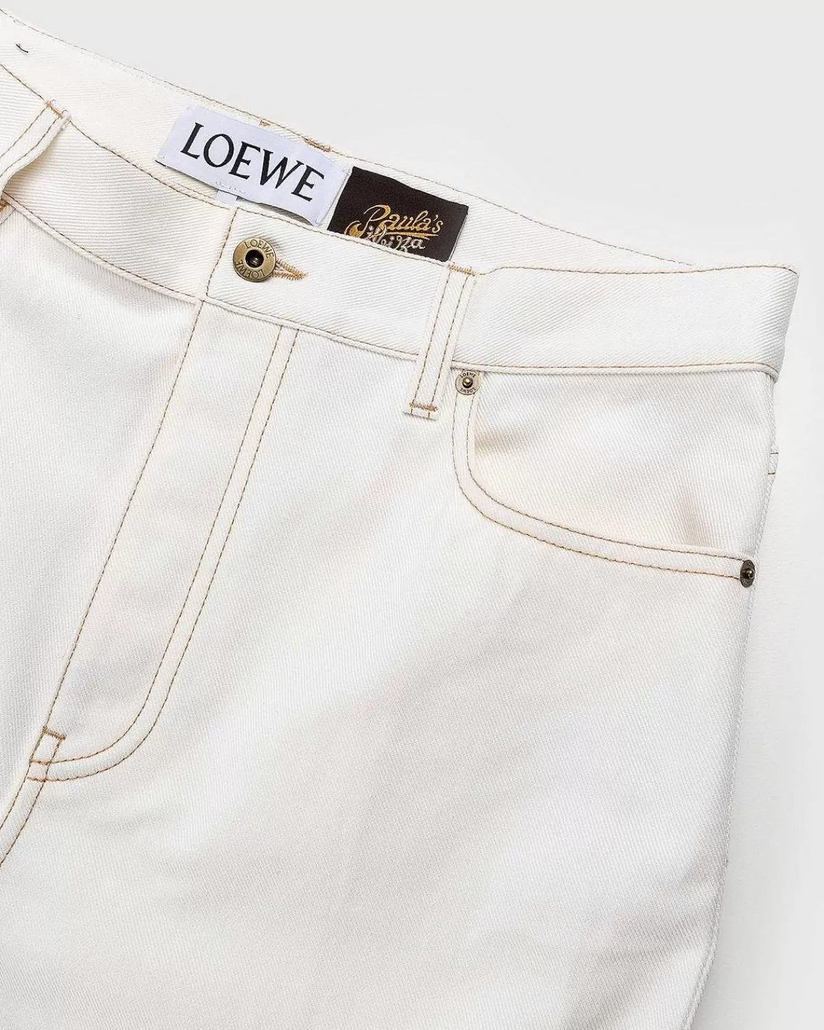 Loewes Seneste Paula’S Ibiza-Kollektion Inkluderer En Ny Denim-Silhuet, Der Er Støvleskåret Med Et Let Udstrakt Ben. Produceret I En Mellemvægtig Bomuldsdenim, Parret Fremstår I En Ren Hvid Farvevariant, Der Legemliggør Kapslens Minimale Ånd, Med En Luksus, Moden Stemning. Kontrasterende Syninger Tilføjer En Smule Dimension Til Stilen, Som Er Afsluttet Med En Loewe-Præget Ruskindslap På Bagsiden Af Linningen. Hvis Der Nogensinde Har Været Et Par Jeans Lavet Specielt Til Sommeren, Så Er Det Her.