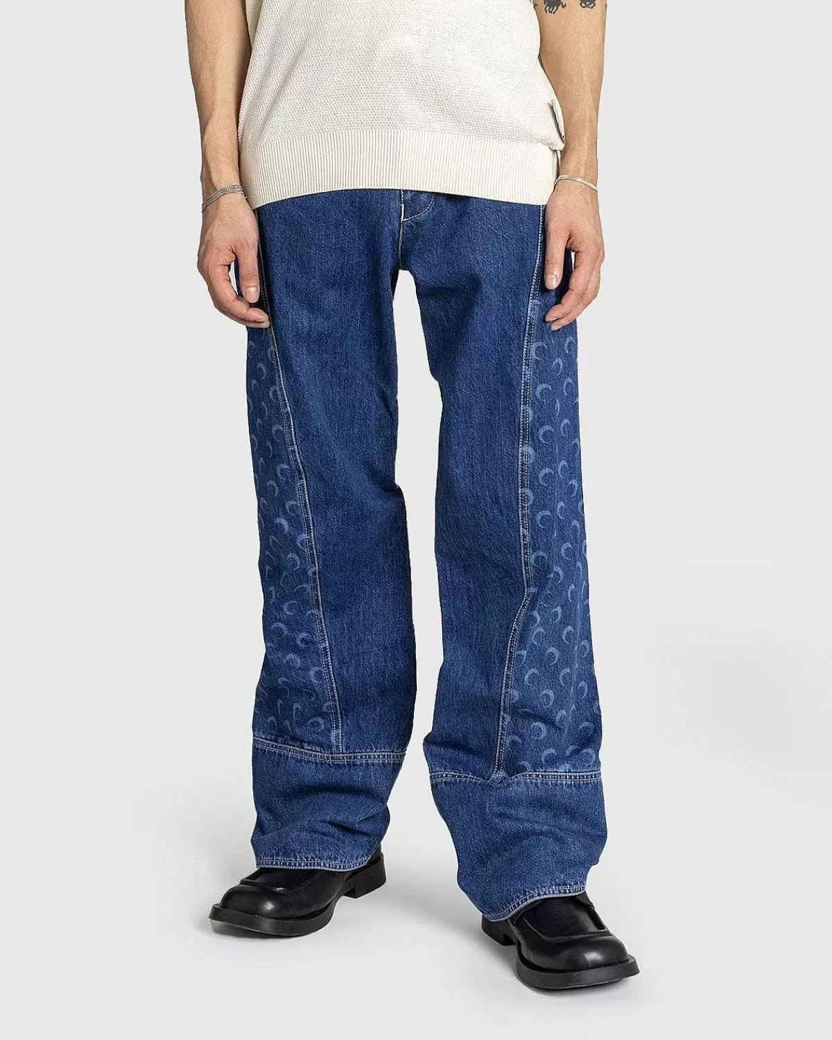Dette Par Marine Serre-Denim Er Produceret I 100 % Bomuld Og Defineret Af Snoede Snit På Front- Og Bagpaneler, Der Vise…