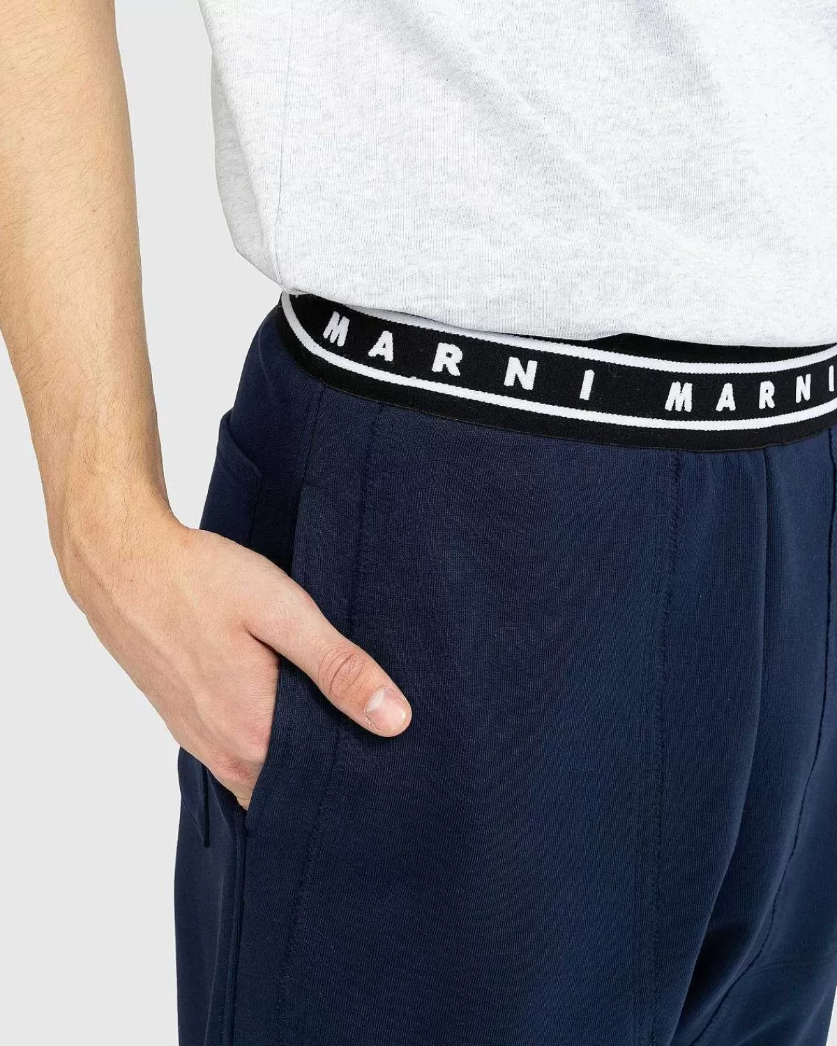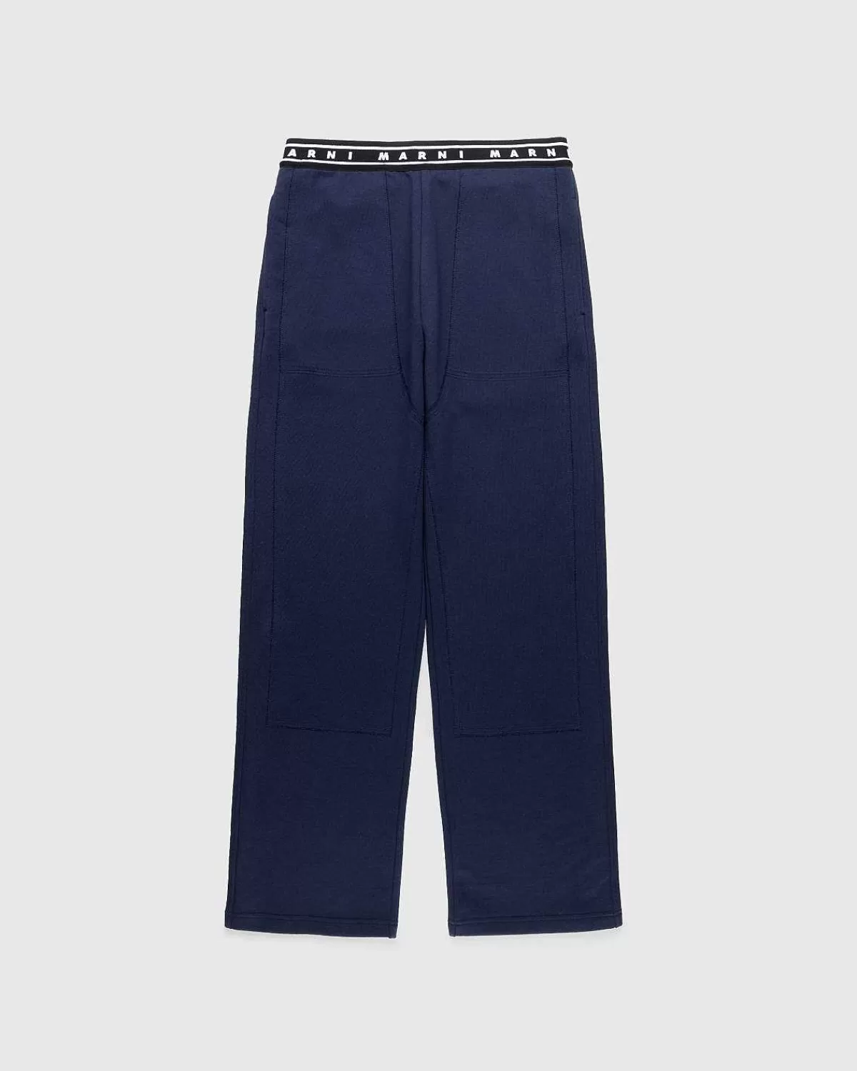 Denne Marni-Buks Er En Behagelig Stil, Primært Strikket Af Bomuld Med Polyesterpåføring. Det Lige Ben Er Defineret Af En Elastisk Linning, Der Er Prydet Med Et Gentaget Marni-Logo. Dobbelt Knæpanel Giver Forstærkning, Da Bunden Derefter Er Udstyret Med Håndlommer På Siderne Og En Enkelt Patch-Lomme Bagpå.