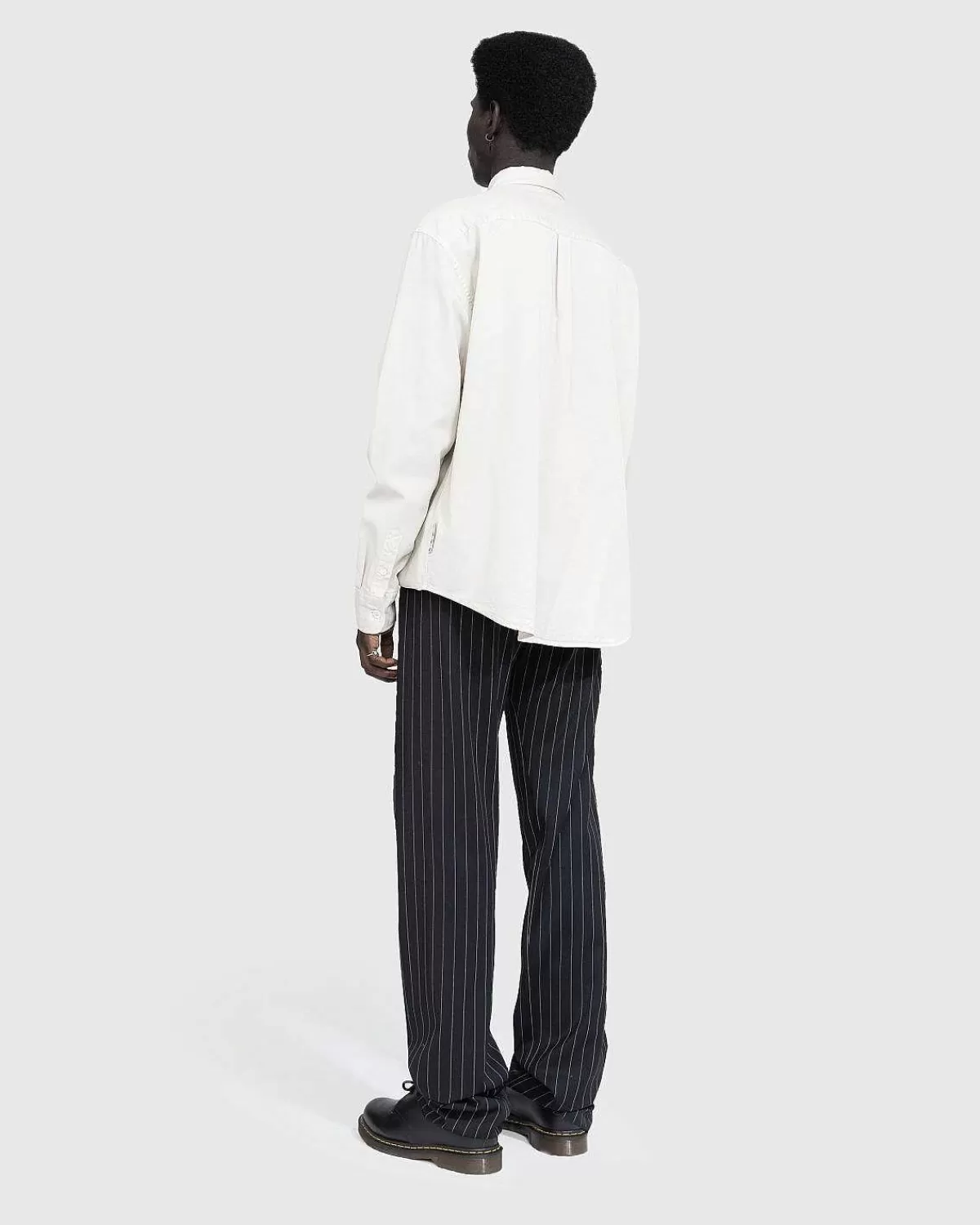 Twist Seam Buksen Er En Signatur Martine Rose Pant Style, Her Produceret I Et Blødt Uldblandingsstof. Skåret Til En Afslappet Pasform, Dette Særlige Par Fremviser Et Nålestribet Look Og Er Defineret Af Sømme, Der Snoer Sig Rundt Til Knæet. Yderligere Detaljer Inkluderer Lynlås Foran Og Låselukning, Bælteløkker For I Taljen Og Lommer Indbygget I Taljen Og Bagsiden. Tapen I Linningen Er Derefter Mærket Til Subtilt At Mærke Tøjet.