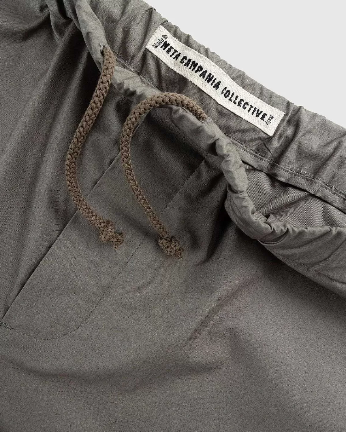 Den Uforede Ed-Bukser Med Snoretræk Er En Karakteristisk Meta Campania-Kollektiv Buksestil, Der Ankommer Til Sæsonen I En Alsidig Grå Farve. Parret Er Lavet Af Et Mellemvægtigt Italiensk Bomuldsstof Og Skåret Til En Afslappet Pasform Med Et Lige Ben Og En Mellemhøjde. En Tynd Bomuldssnøre Er Indbygget I Linningen For At Gøre Plads Til En Mere Komfortabel Pasform. Lommer Kommer Frem Ved Sidesømmen Samt Bagsiden For At Fuldende Designet.