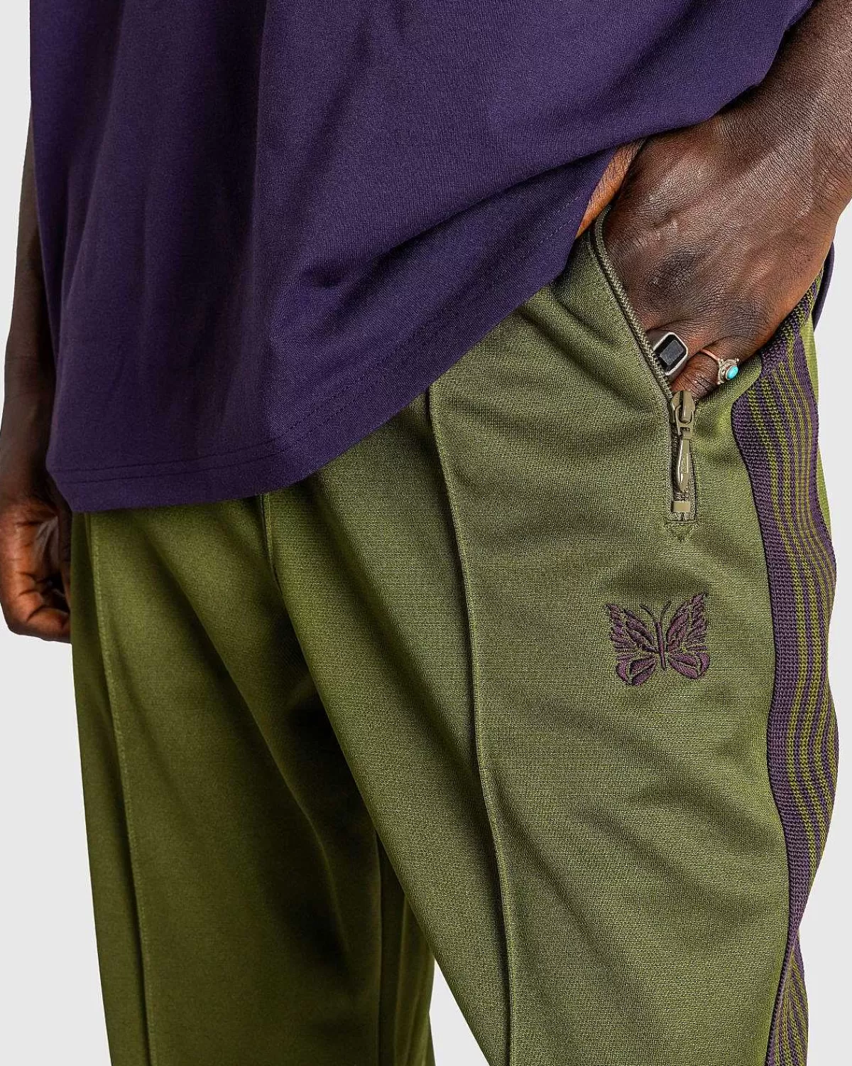 Hyggelige Og Grundede Til Alle Lejligheder, Disse Ligebensbukser Er Lavet Af En Holdbar Og Strækbar Kavaleri-Twill-Vævning, Der Ligner Needles’ Cavalry-Twill-Sportsjakke. De Tilspidsede Bukser Er Detaljerede Med Side- Og Baglommer Med Lynlås Og Har En Elastisk Linning Med En Indvendig Snøre, Sammen Med Mærkets Papillon-Logo Broderet På Venstre Ben.