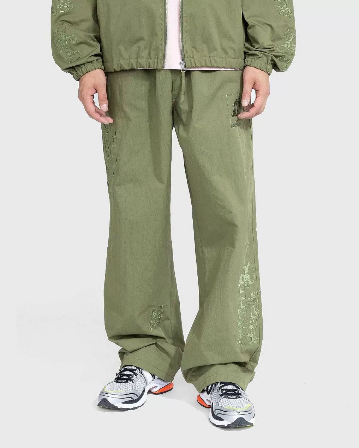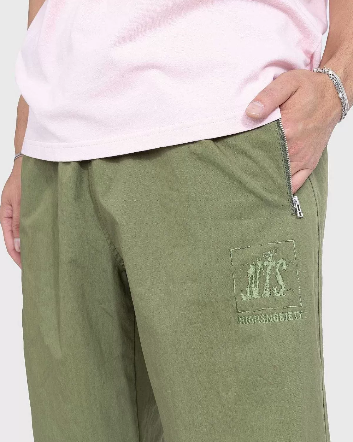 De Børstede Nylon-Trackpants Er En Del Af Vores Samarbejde Med Nts, Onlineradiostationen Og Medieplatformen, Der Har Været På Forkant Med Obskur Musik Siden 2011. Detaljeret Med En Glat, Mat Tekstur, Bukserne Er Lavet Af Bomuld Og Nylon Blend Med Broderet Grafik Overalt. Et Co-Branded Logo Designet Af Kunstneren George Addy I Frontlommen Sammen Med En Enkelt Baglomme Pynter Yderligere På Udseendet, Mens To Sidelommer Og En Elastisk Linning Fuldender Designet.