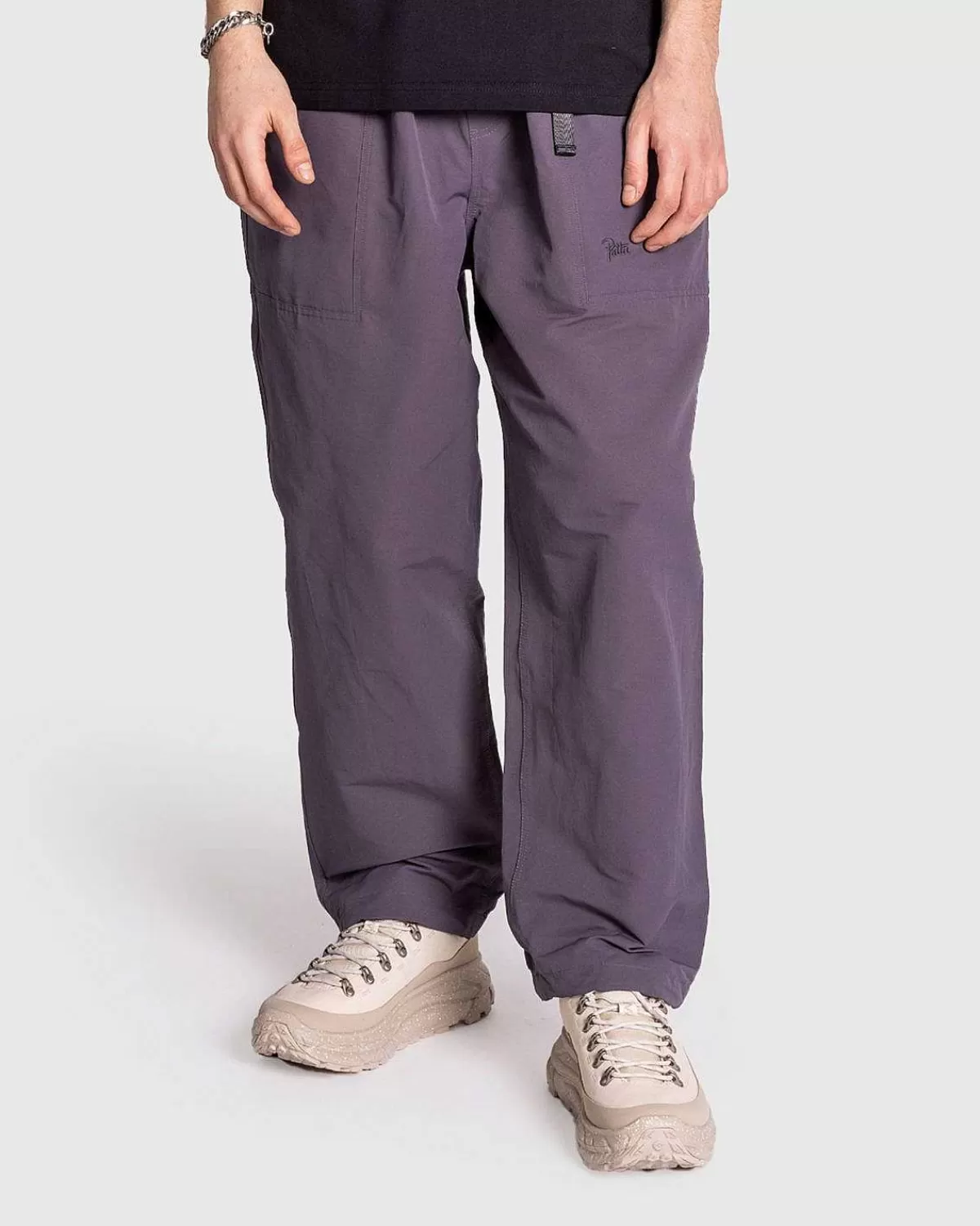 Som Navnet Antyder, Er Pattas Taktiske Chino Med Bælte Defineret Af Et Integreret Bælte, Der Giver Dig Mulighed For At Passe Ind. Det Løstsiddende Par Er Produceret I Et Teknisk Bomuld-Nylon-Stof Og Har To Sidelommer Med Lynlåse Og En Ekstra Lynlåslomme På Bagsiden. Mærkets Ikoniske Scriptlogo Er Indbygget På Forsiden Af Venstre Ben For At Minimere Silhuetten.