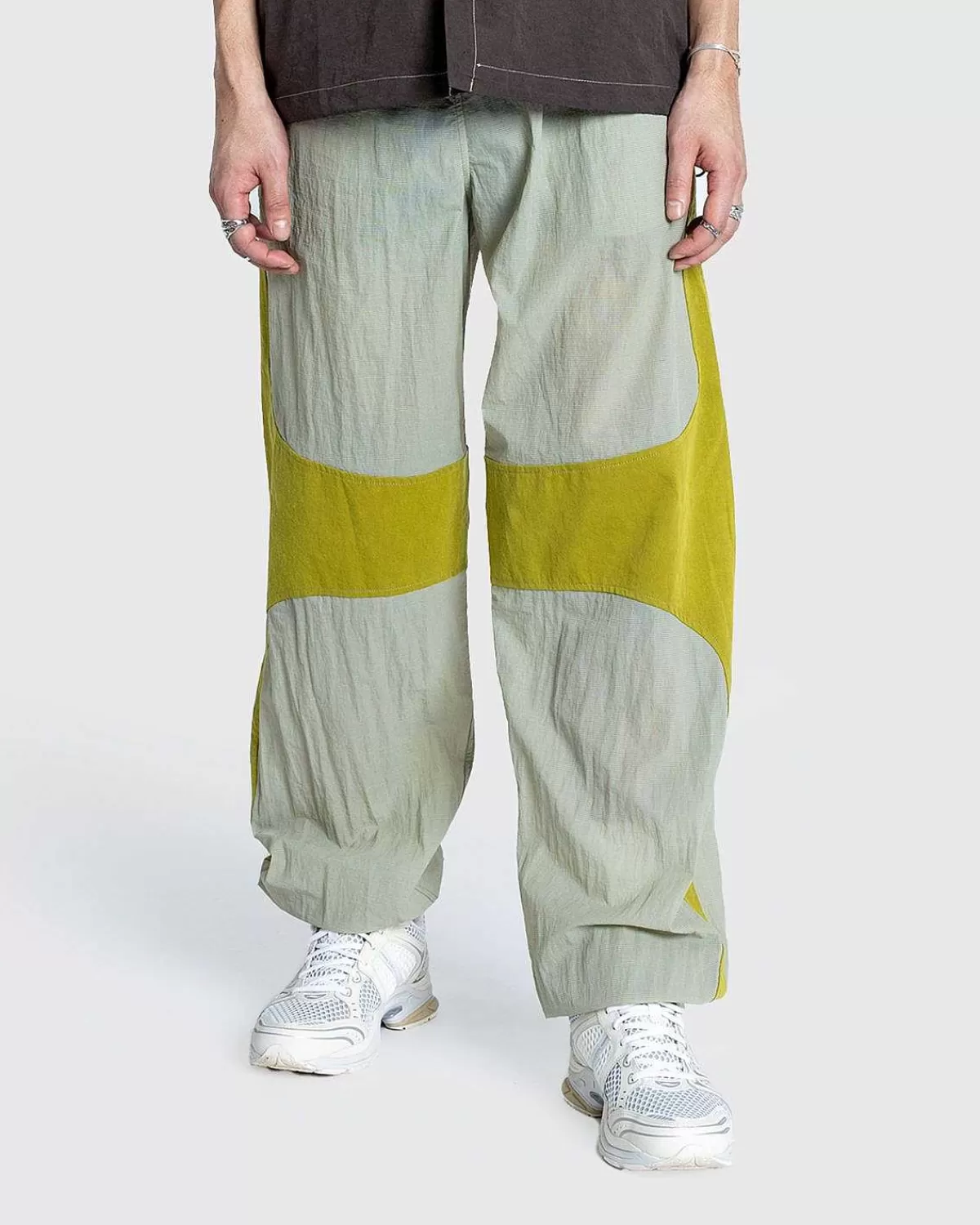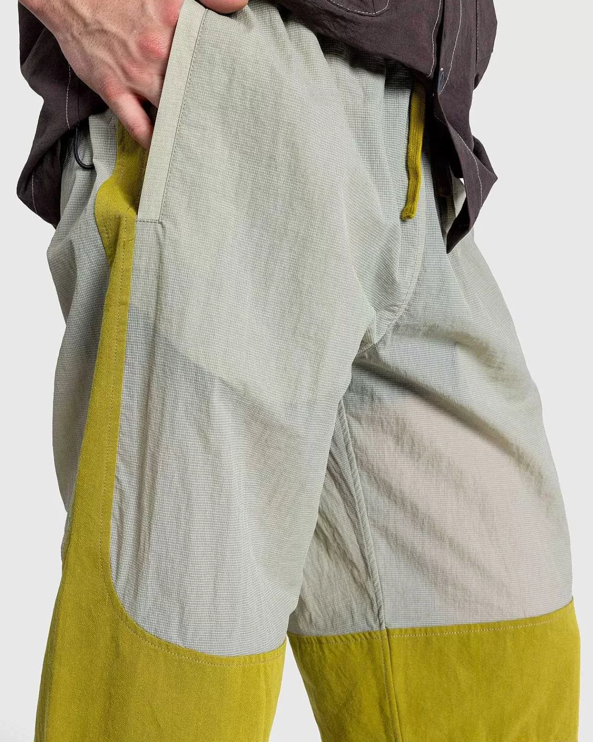 The Is Er En Sporty Buksestil Af Ranra, Som Dukker Op Denne Sæson I En Tofarvet Kaki Og Grå Farve. Det Er Overvejende Lavet Af Et Let Nylonstof, Med En Elastisk Linning For At Forbedre Den Generelle Komfort. Ankelmanchetterne Er Også Elastiske, Da Parret Derefter Er Udstyret Med Sidelommer For At Fuldende Designet.