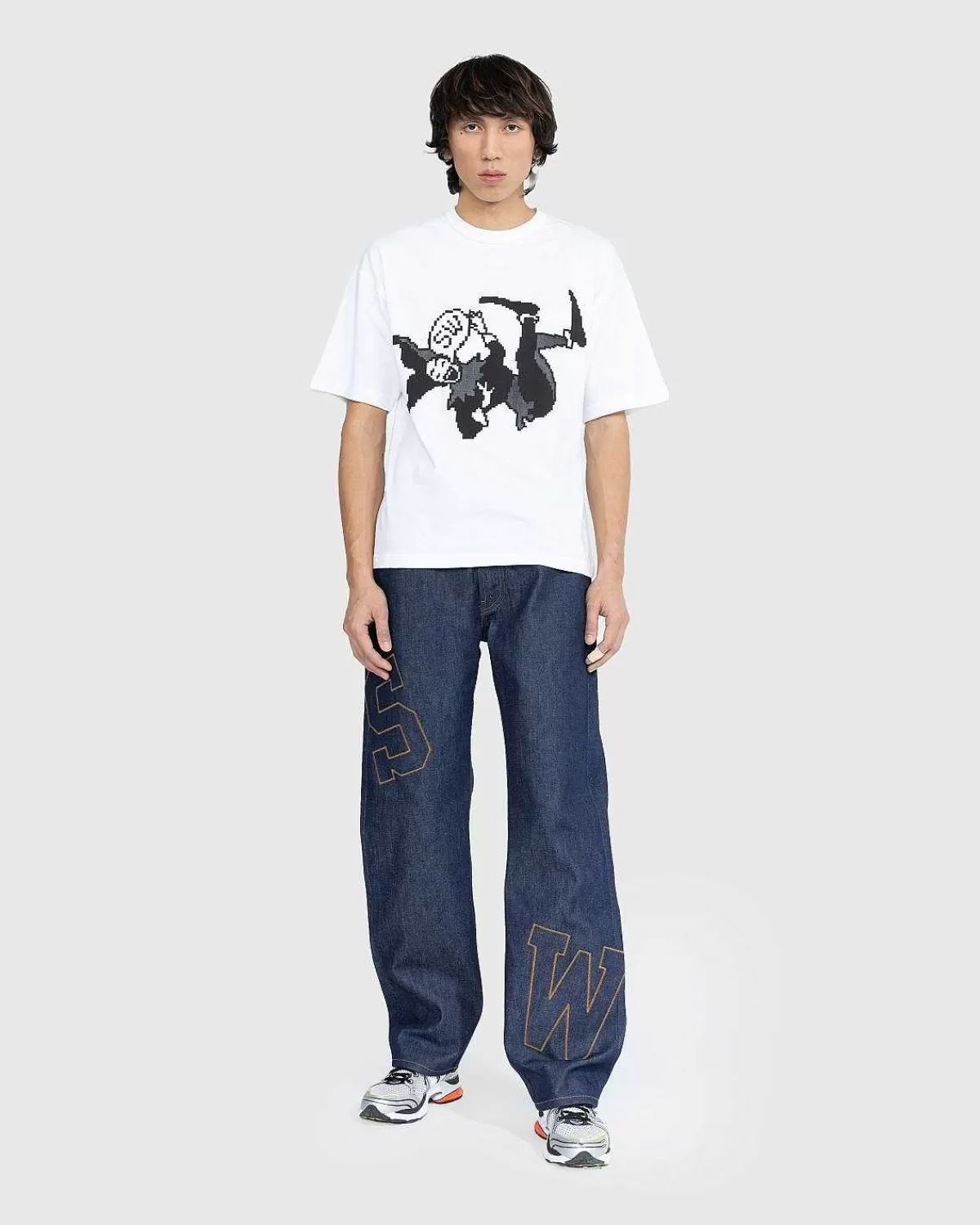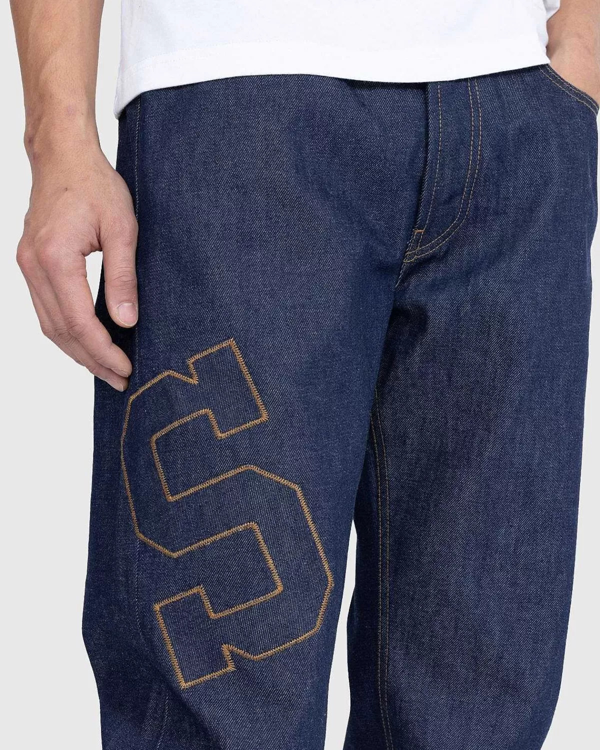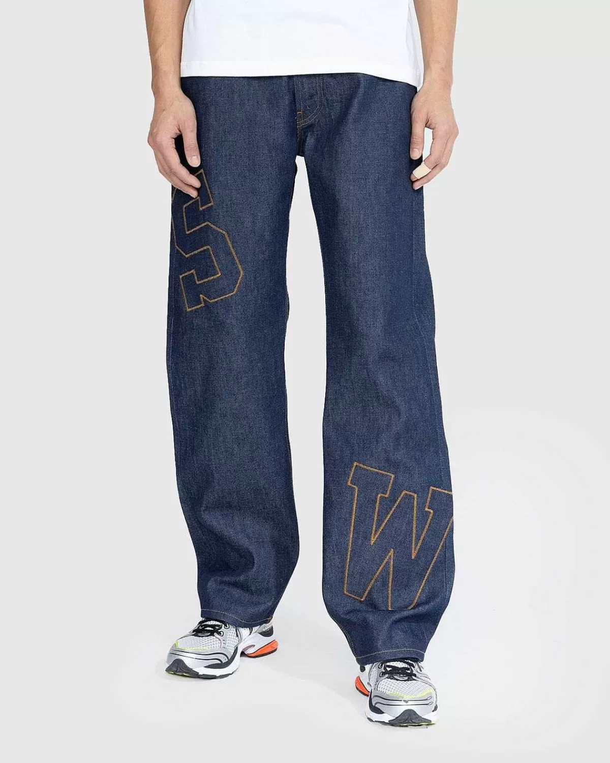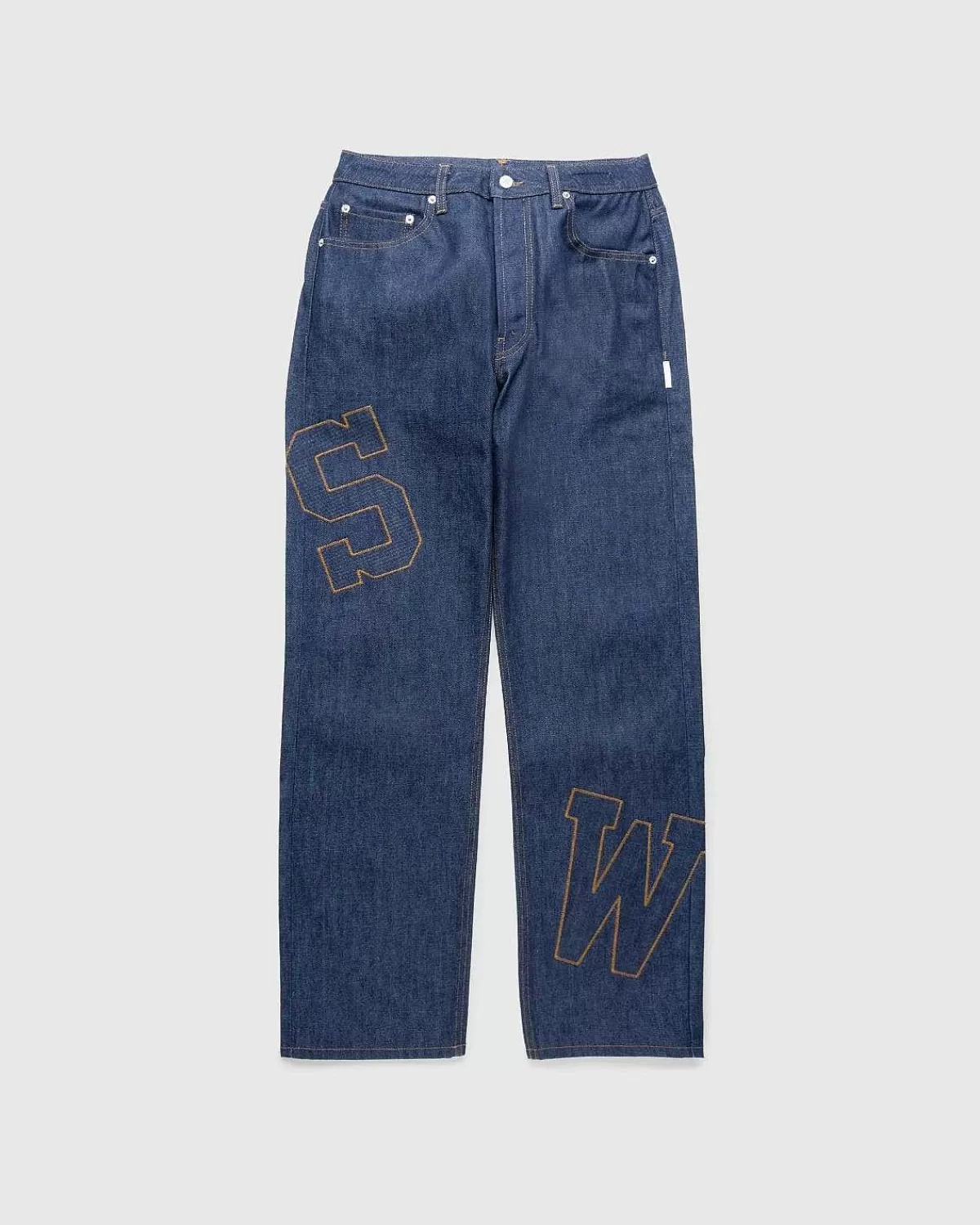 Denne Saintwoods-Buksestil Er Lavet I Los Angeles Af Selvedge Denim I Rå Indigo. Parret Er Skåret Til En Overdimensioneret Pasform Og Har Klassisk Fem-Lommet Styling, Med Knaplukning Og Bælteløkker For I Taljen. Tonalt Patchwork Med Kontrastsyninger Er Implementeret I Hele Silhuetten, Mens Et Hævet Logo Er Fremvist På En Af Baglommerne.