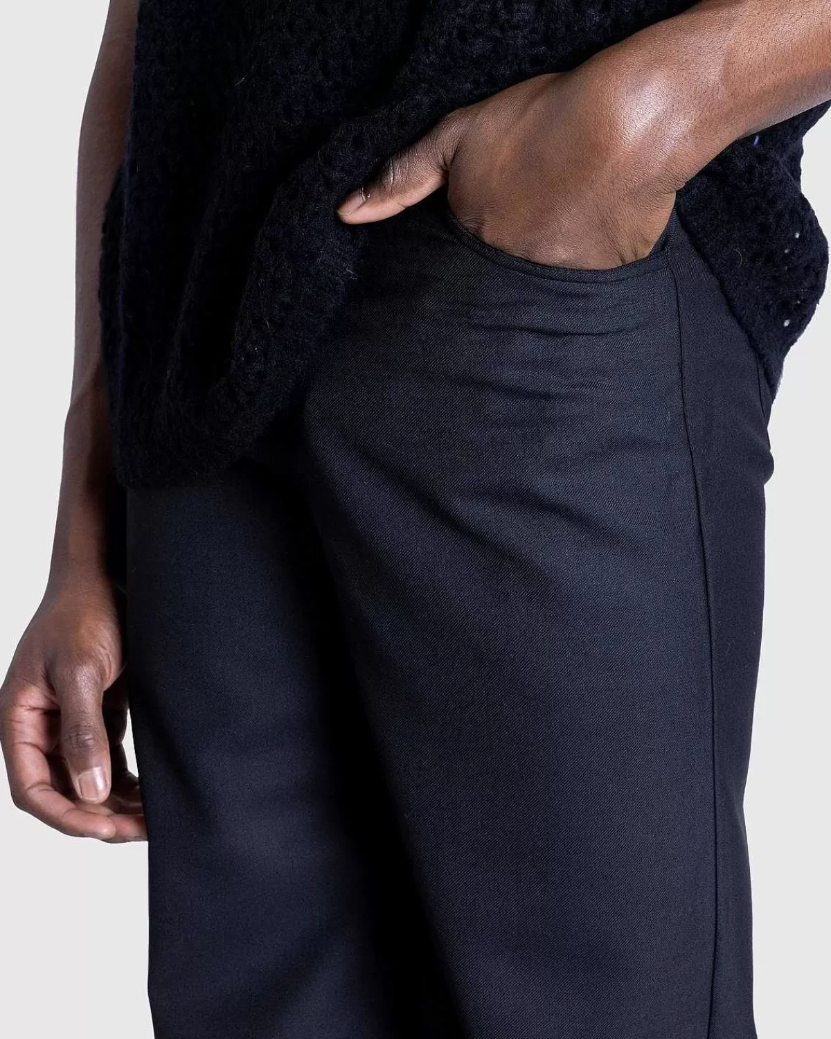 Jiro-Buksen Er Ekspertfremstillet Af En Uldblanding, Der Stammer Fra Bulgarien. Parret Er Skåret Til En Bred Pasform Med En Høj Højde Og Har Klassisk Fem-Lommet Styling. Traditionelle Designelementer Omfatter Knaplukning, En Lynlåsgylp Og Bælteløkker For I Taljen.
