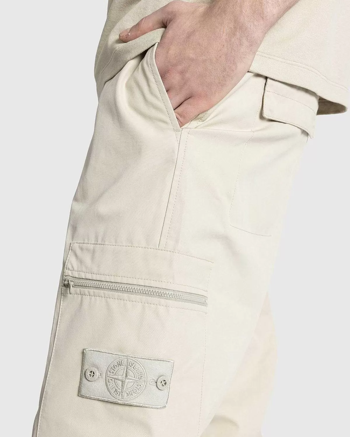 Ghost Piece-Buksen Er En Monokromatisk Stil Produceret I 100 % Bomuld. Skåret Til En Normal Pasform Med En Mellemhøj Stigning, Det Beige-Farvede Par Har Derefter Knaplukning Og En Lynlåsgylp, Bælteløkker I Taljen Og Lommer Indbygget På Siderne Og Bagsiden Af Hvert Ben. Stone Island’S Signaturaftagelige Logomærke Er Påført Venstre Ben For Definitivt At Mærke Tøjet.