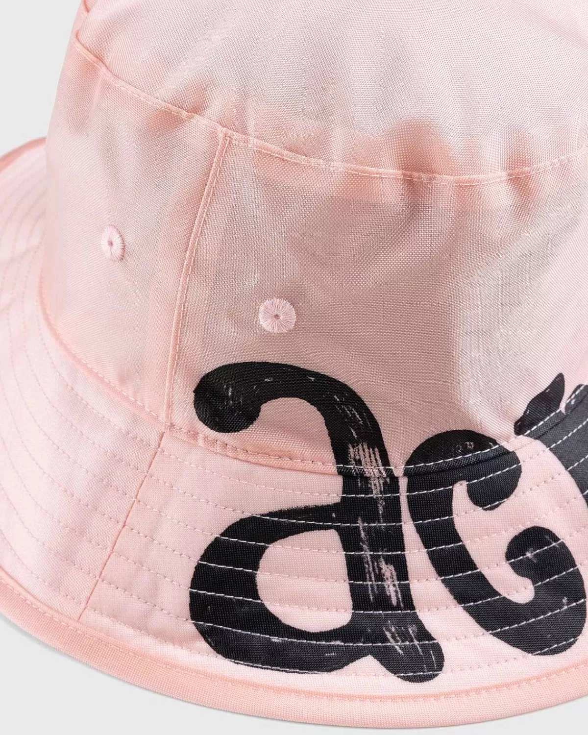 Acne Studios’ Logo Bucket Hat Er En Sjov Hovedbeklædningsstil, Der Ankommer Denne Sæson I En Legende Peach Pink Colorway. Den Er Lavet Af Letvægtsnylon Og Har Tonale Broderede Øjer For Øget Luftstrøm. Et Sæsonbestemt Logo Er Skærmtrykt På Kanten Af Hatten For At Mærke Stykket.