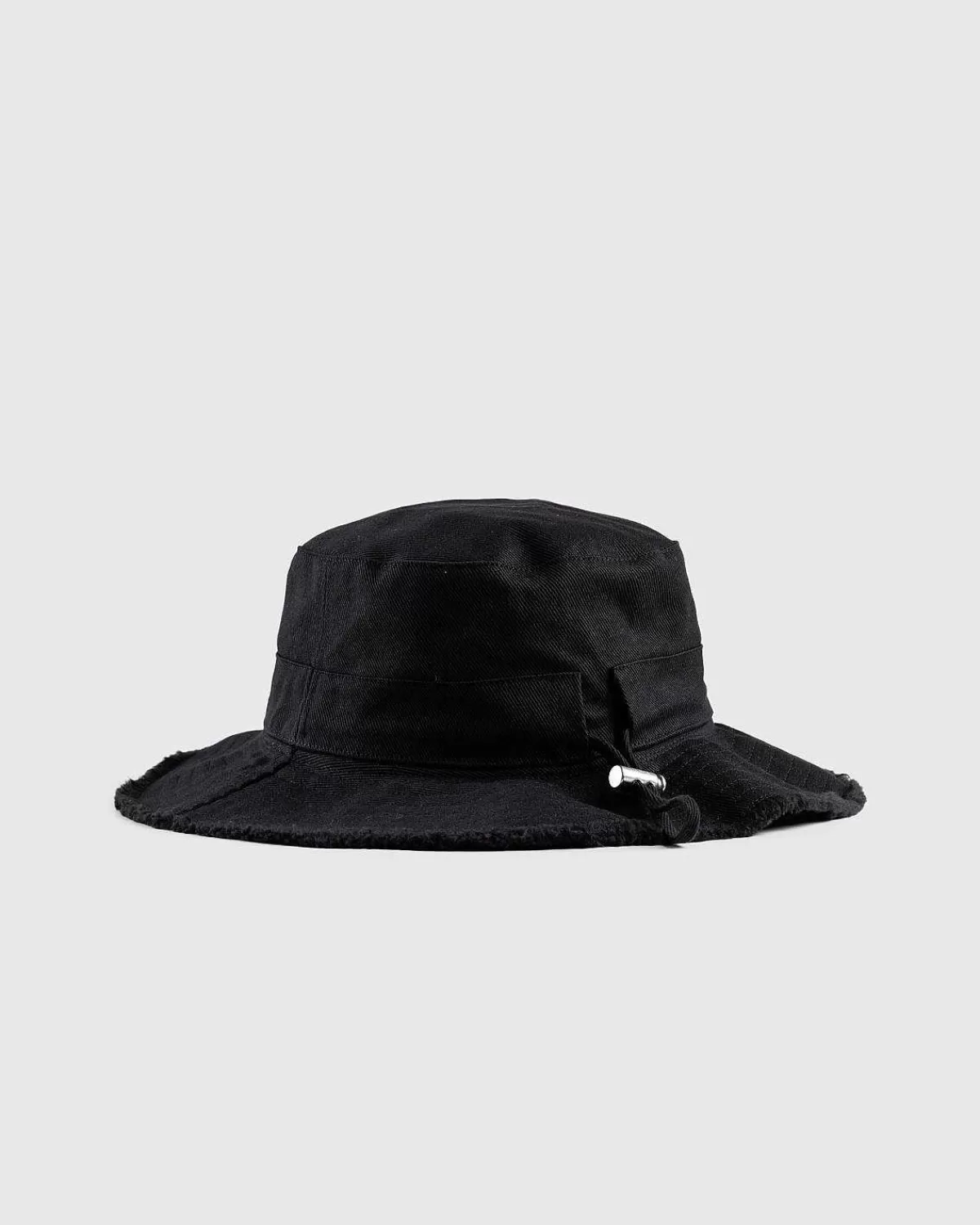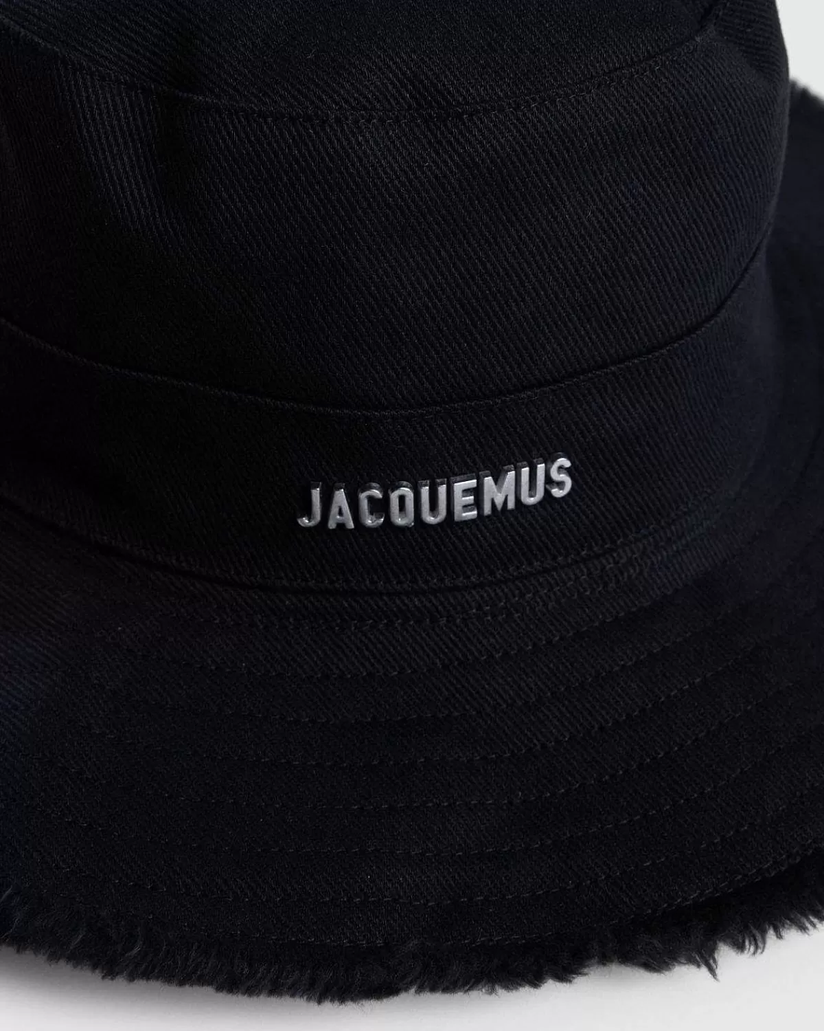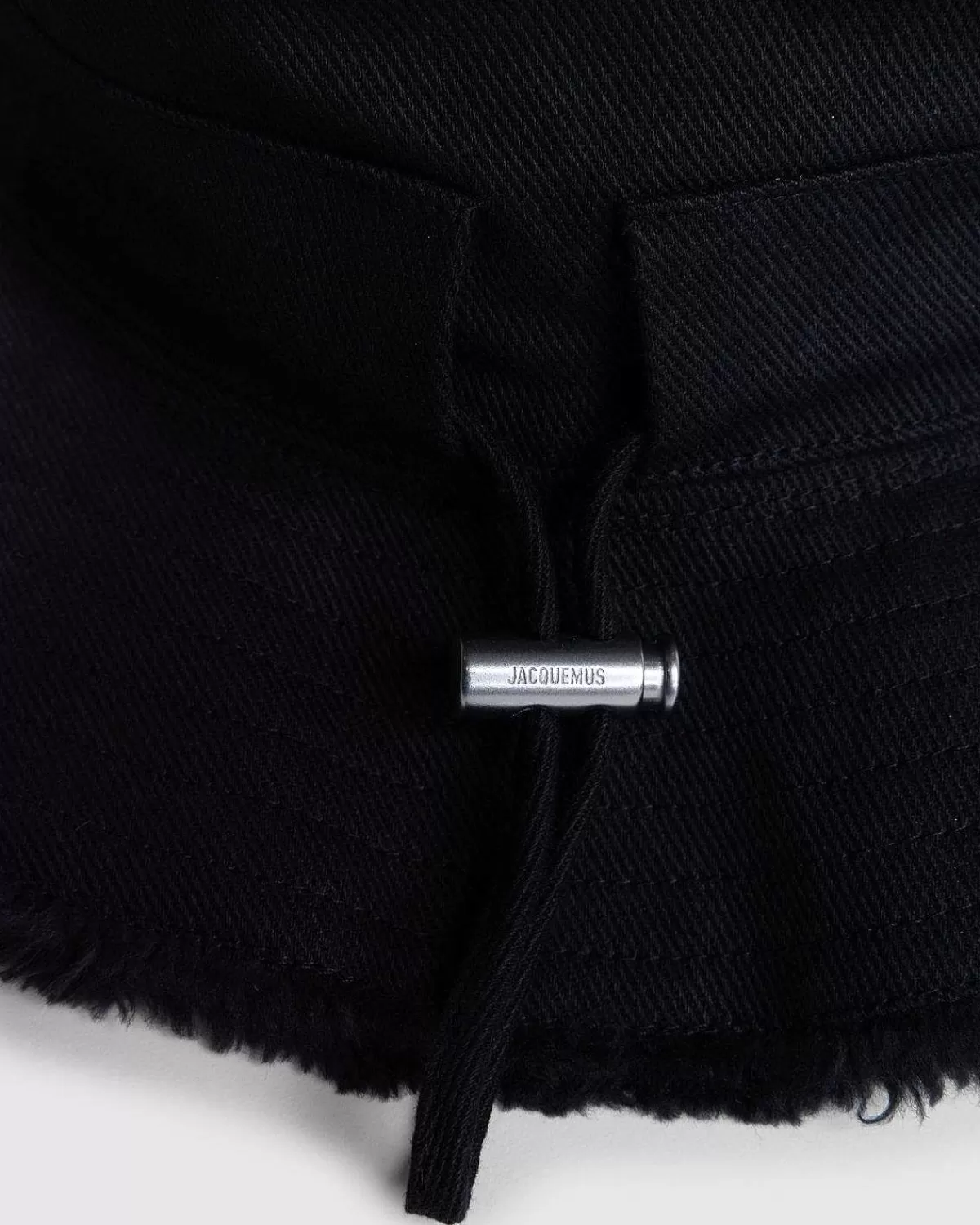 Le Bob Artichaut Er En Flosset Ekspeditionshat Konstrueret Af 100 % Bomuld. Den Varme Vejr-Stil Ankommer Denne Sæson I En Snigende Helt Sort Farvevariant Med Et Jacquemus-Logo Af Sølvmetal Indbygget På Forsiden Af Silhuetten. Hatten Er Detaljeret Med Flossede Kanter Langs Den Sammensyede Kant Og Er Udstyret Med En Lang Justerbar Rem.