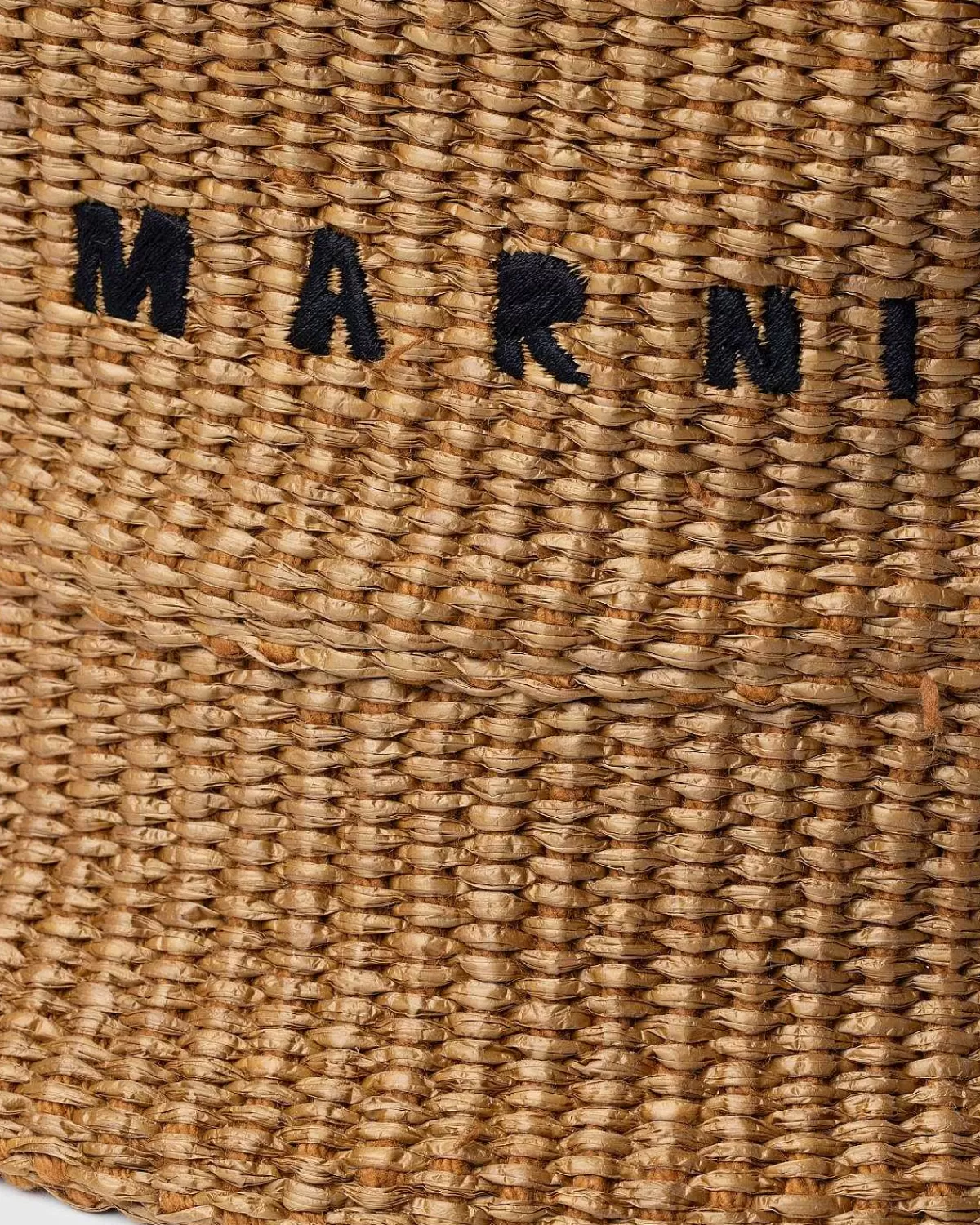 Marnis Ss24-Kollektion Er En Ode Til Opdaterede Klassikere Som Denne Legende Bøttehat. Hatten Er Lavet Af En Bomulds-Polyblanding Med En Vævet Raffia-Tekstur Og Er Afsluttet Med Et Kontrasterende Broderet Logo I Midten.