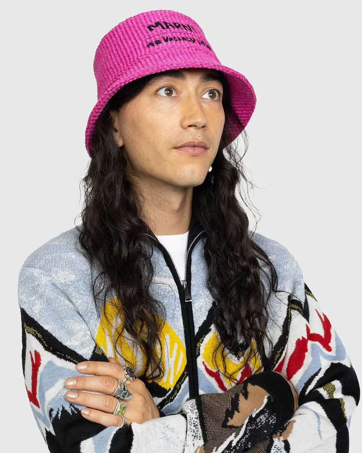 Hatte>Marni Raffia Bucket Hat Fuschia