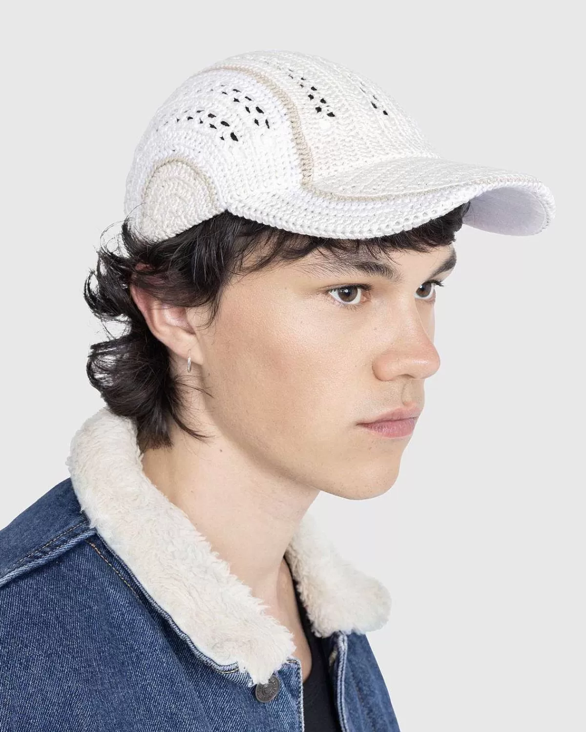 Lavet Af Egyptisk Bomuld Hæklet I Hånden I Italien, Baseballkasket Har Perforerede Detaljer Og Et Kontrastbånd På Si…
