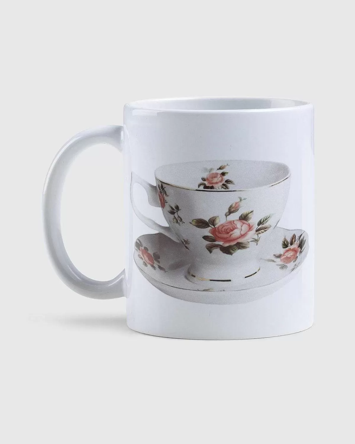Dette Keramiske Krus Er Detaljeret Med Et Print Af En Klassisk Tekop Og Underkop. Kruset Er En Del Af Not In London, Hig…