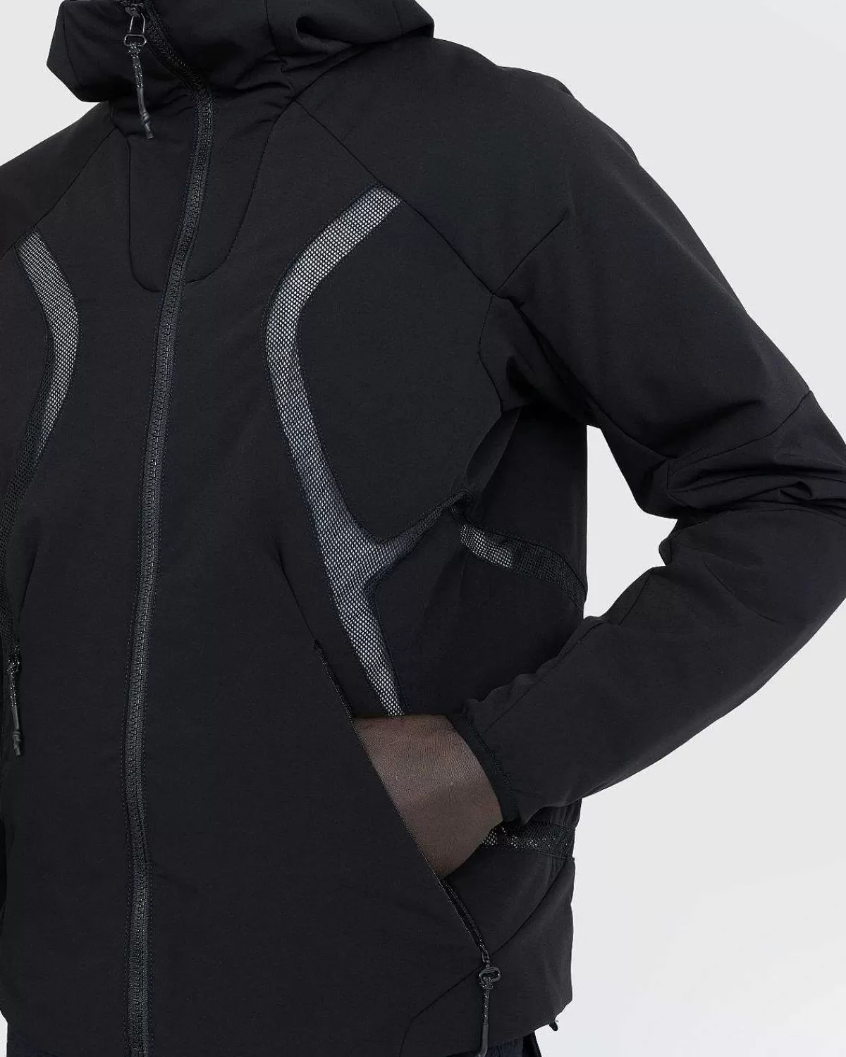 Flashjakken Er En Teknisk Overtøjsstil Lavet Af Et Let Elastisk Nylonmateriale Med Mesh-Indsatser Foran Og Bagpå Silhuetten. Fuldt Foret Og Polstret, Beklædningsgenstanden Er Udstyret Med En Hætte Og Sadelærmer, Som Hver Har Elastisk Kant. En Snørekant Giver Dig Mulighed For At Foretage Mindre Justeringer Af Stylingen, Da Skrå Lynlåslommer Er Indbygget På Forsiden Af Jakken For At Give Dig Plads Til Sikkert At Bære Det Nødvendige.