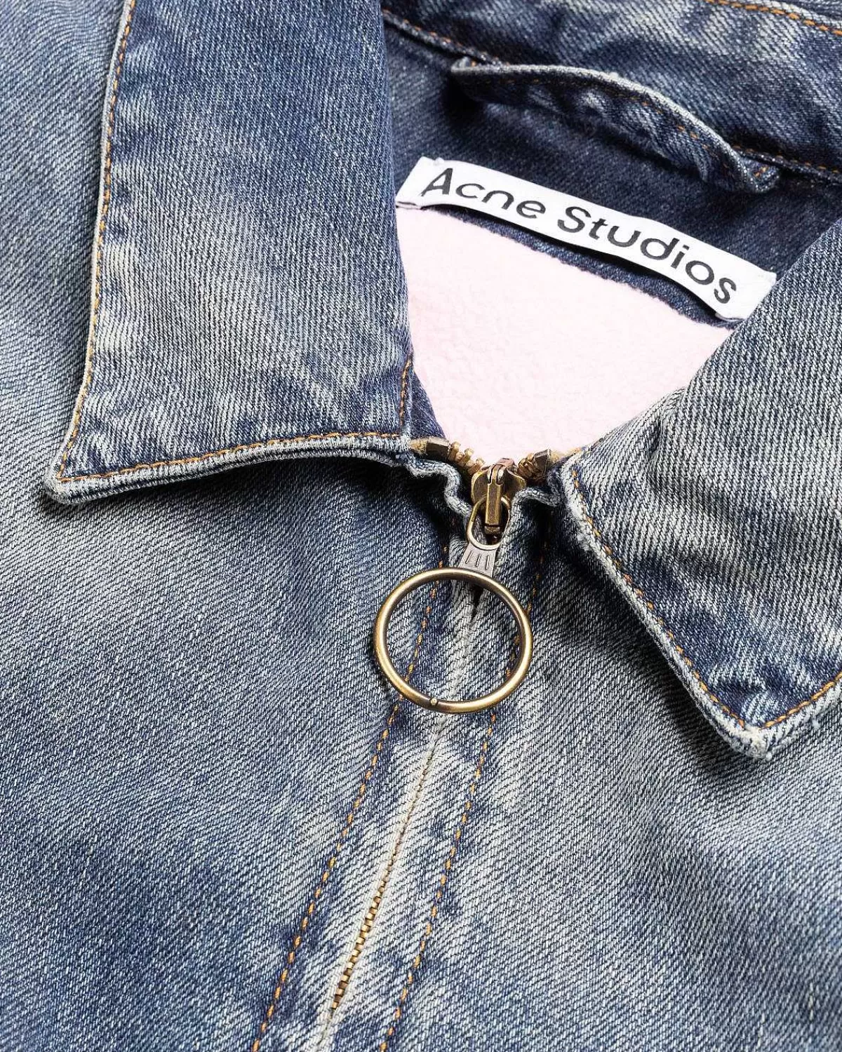 Den Denimpolstrede Jakke Er En Af Mange Iøjnefaldende Stykker Fra Acne Studios’ Seneste Kollektion. Fremstillet Af En Blanding Af Økologisk Og Genbrugsbomuld Med En Pigmenteret Finish, Jakken Er Detaljeret Med En Elastisk Kant, Sidesømmelommer, Lynlås Foran Og Kommer Med Mærkets Logo Bagpå.