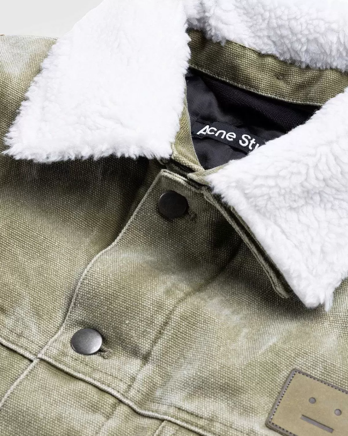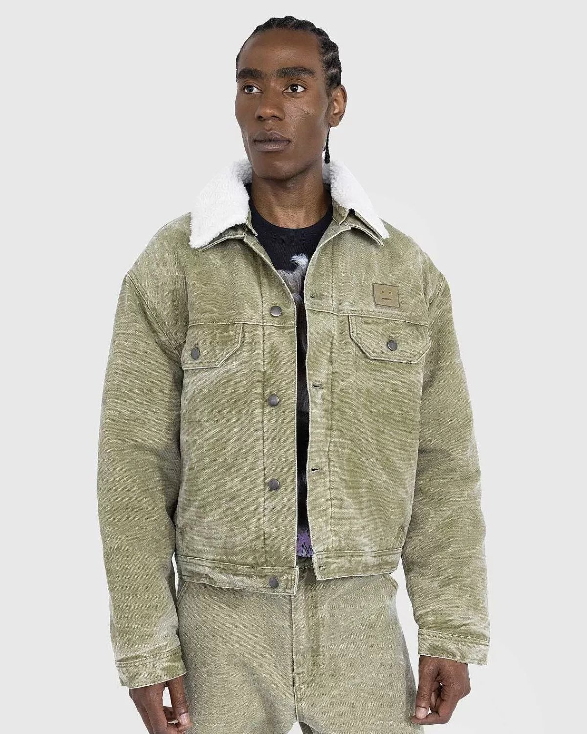 A Unisex Style, Acne Studios Polstret Jakke Er Lavet Af Lærredsbomuld Med En Beklædningsfarvet Finish. Den Er Udstyret Med En Aftagelig Krave Og Knaplukning Foran, Samt Lommer I Sømmen. Mærkets Ansigtslogomærke Er Indbygget På Brystet For At Mærke Silhuetten.