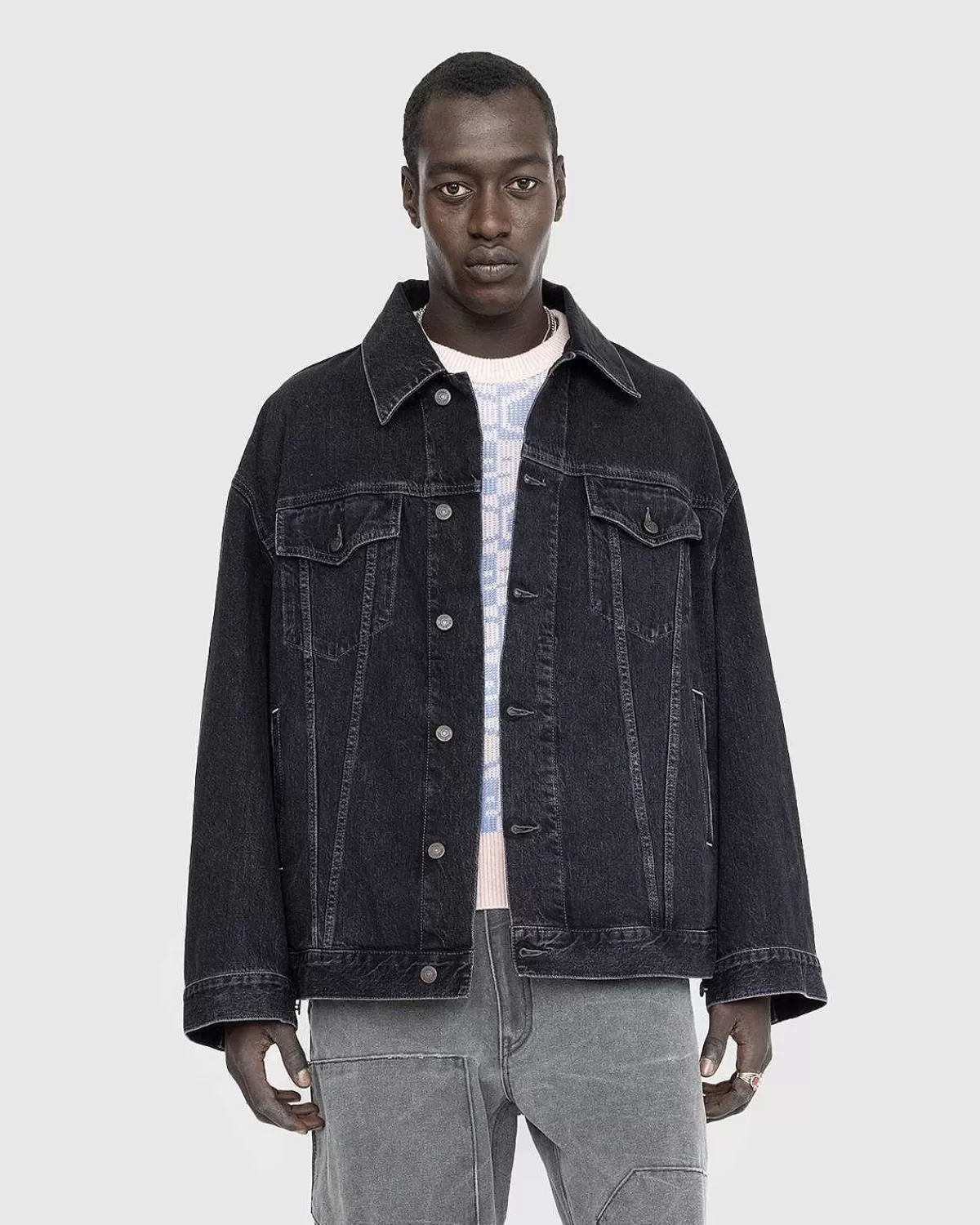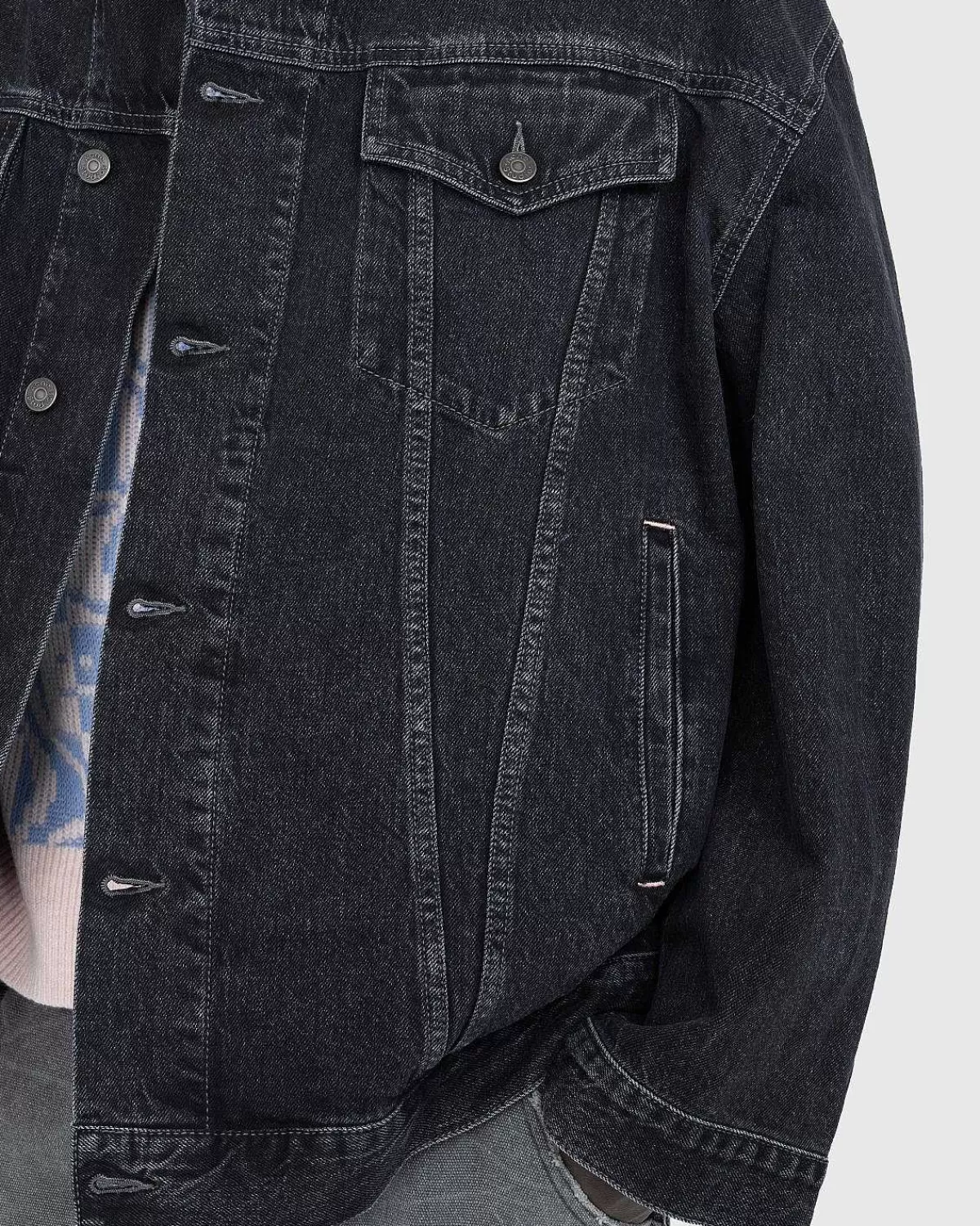 En Overdimensioneret Denimjakke Vil Øjeblikkeligt Bringe En Ekstra Dimension Til Din Garderobe. Denne Særlige Take By Acne Studios Kommer I En Alsidig Sort Vask, Konstrueret Af Økologisk Dyrket Bomuld. Jakken Er Skåret Til En Overstørrelse Unisex Pasform Og Er Yderligere Defineret Af Dens Ekstra Lange Ærmer. Yderligere Detaljer Inkluderer En Klassisk Krave, Faldede Skuldre, Knaplukning Foran, Knapmanchetter Og Knapflige Forneden. Lommer Er Ikke Kun Indbygget På Brystet, Men Også I Siderne Til Dine Hænder.