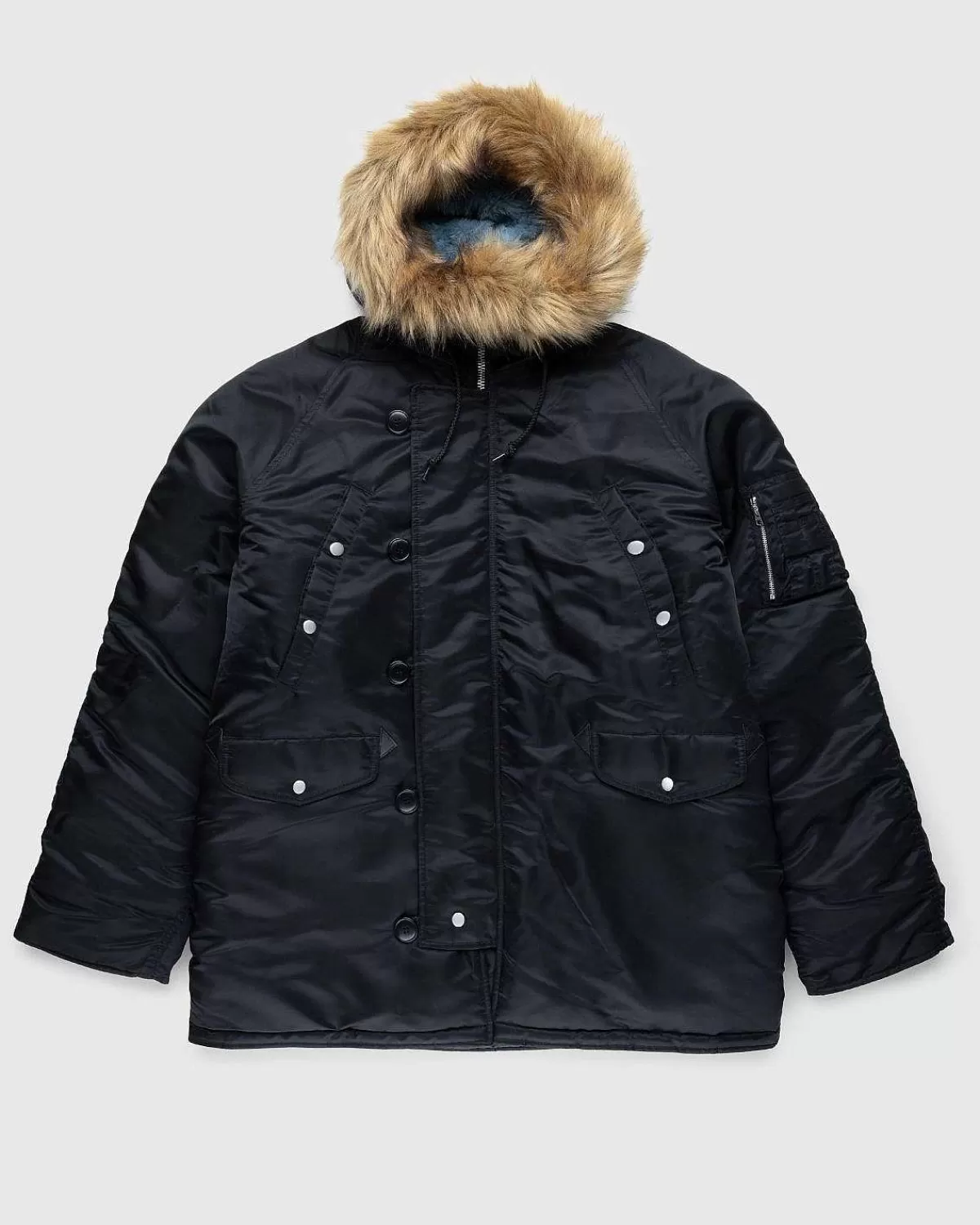 N3B Parka Er Oprindeligt Produceret I 1950’Erne Til Det Amerikanske Militær Og Er En Af To Stilarter Fra Vores Seneste Samarbejde Med Alpha Industries. Den Opdaterede Parka Er Skåret I En Boxy, Overdimensioneret Pasform Med Faldende Skuldre Og Er Farvet Med Vores Tilpassede Flyvefarve. Detaljeret Med En Imiteret Mouton-Foret Hætte Og En Aftagelig Imiteret Pels-Beklædning, Den Fuldt Forede Jakke Kommer Med Dobbelt Bryst Og Nederste Snaplommer. Mærkelogoer Kan Findes På Den Indvendige Stormklap Og Lynlåslukning Foran, Mens Underarmspanelerne Er Fremhævet Med Tonal Mat Nylon. En Brugerdefineret Highsnobiety Vævet Flag-Label Sidder På Signaturærmets Hjælpelomme.