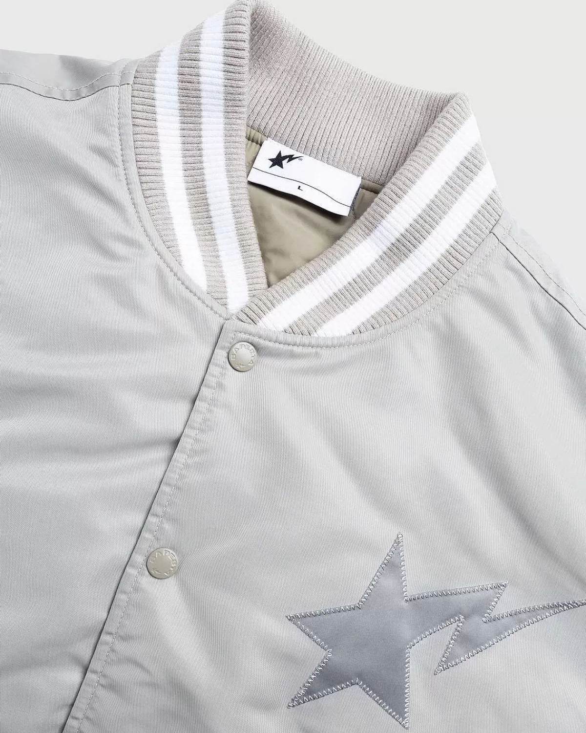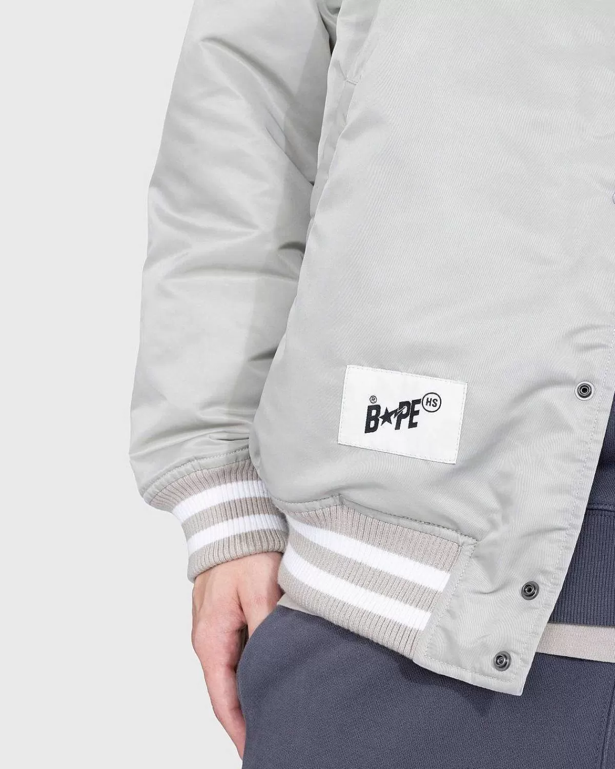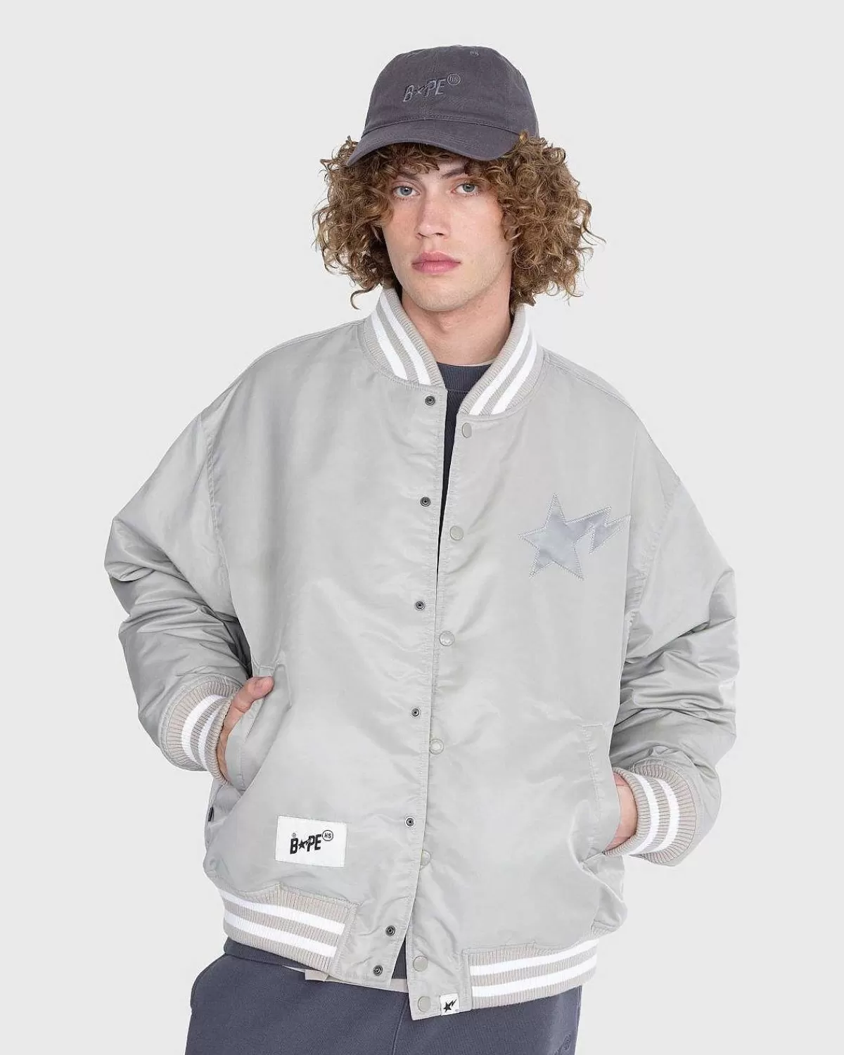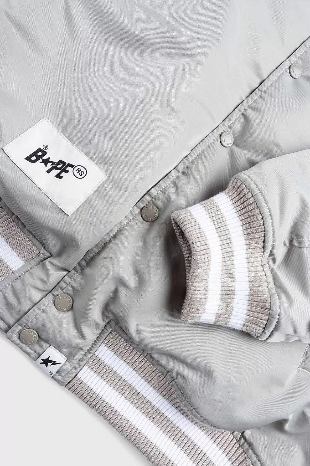 For Vores Fjerde Samarbejde Med Bape Gik Vi Sammen Med Det Banebrydende Brand Om En Række Forhøjede Essentielle Elementer I Tre Forskellige Nuancer. Nylon Varsity-Jakken Er En Klassisk Overtøjsstil I En Monokrom Farvevariant Med Stribede, Tonale Nuancer Ved Kraven, Sømmen Og Manchetterne. En Applikation Sta Kan Findes På Brystet Sammen Med Et Co-Branded Logo På Bagsiden, Begge Detaljerede Med Indviklede Kantsyning. Jakken Er Afsluttet Med En Knaplukning, Frontlommer Og Et Vævet Mærkemærke Over Sømmen.