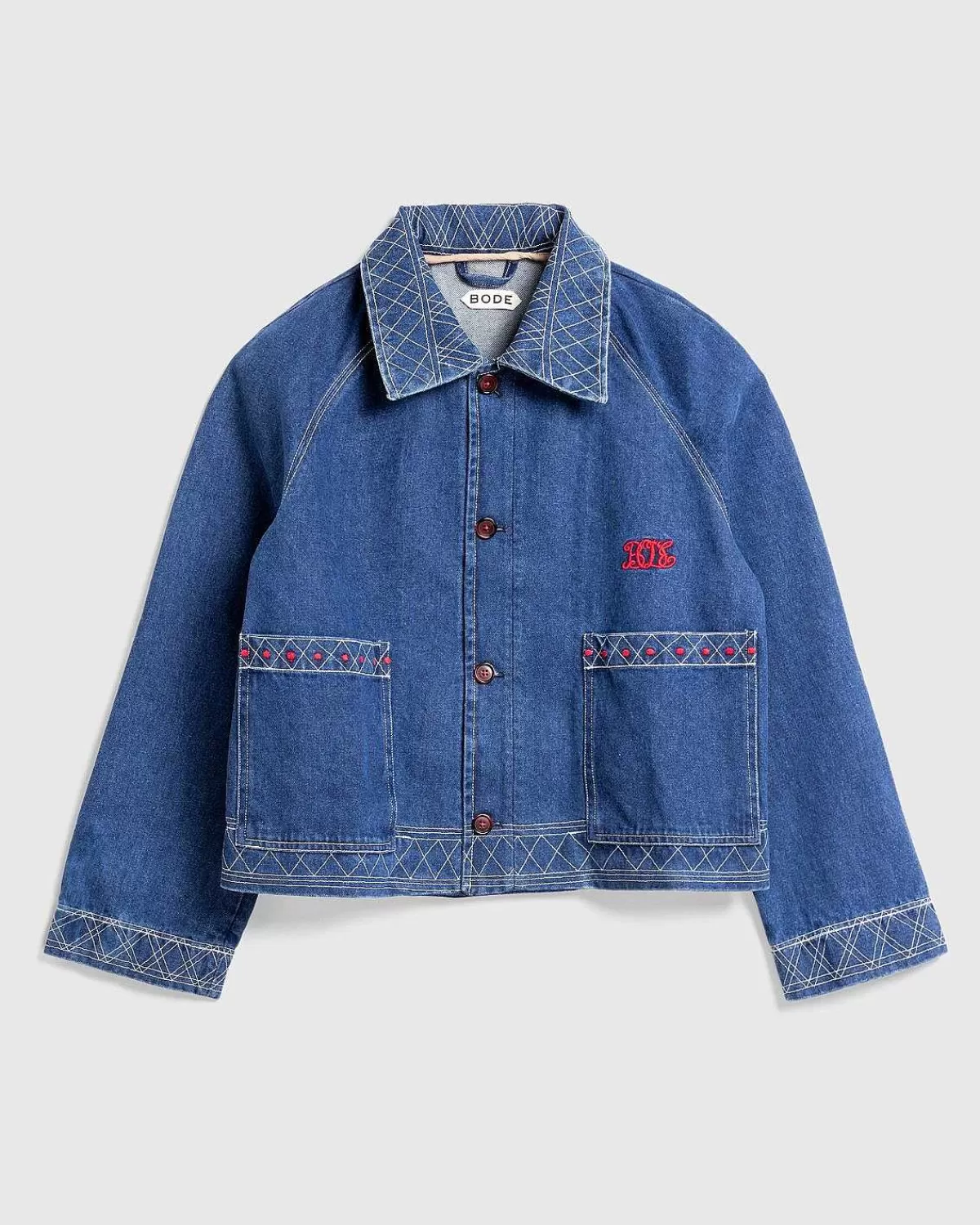 Overtøj>Bode Broderet Denimjakke Indigo