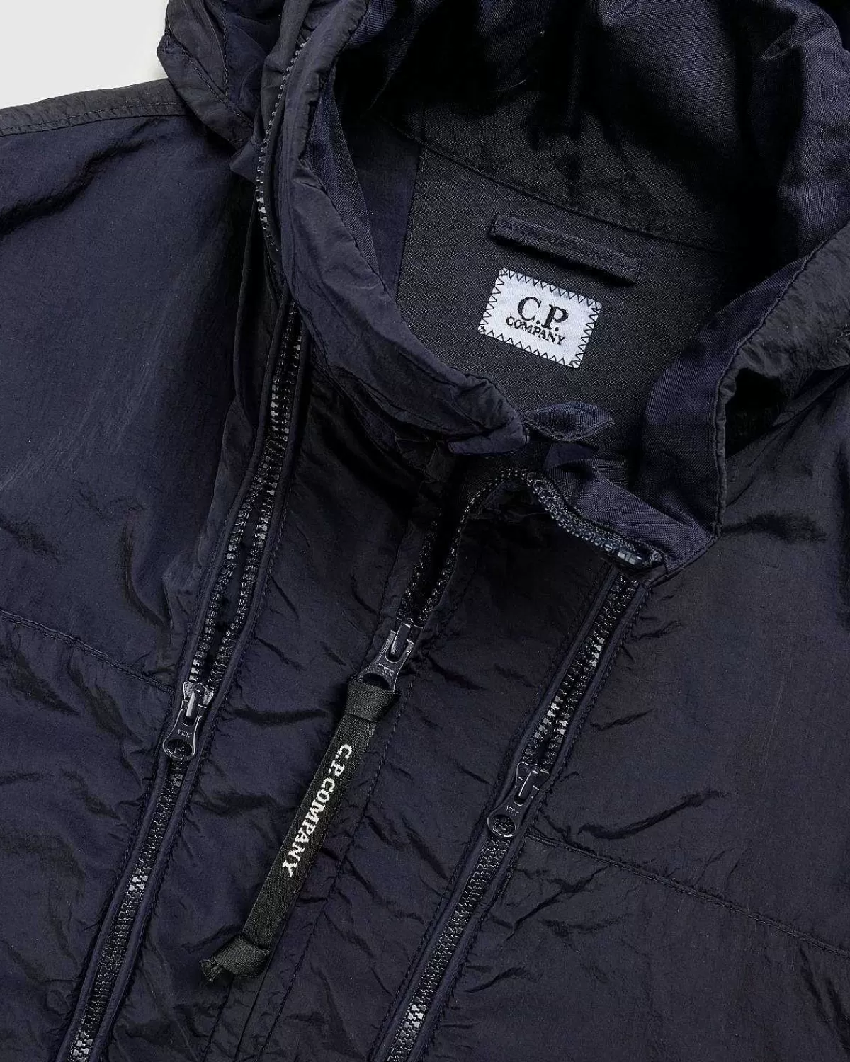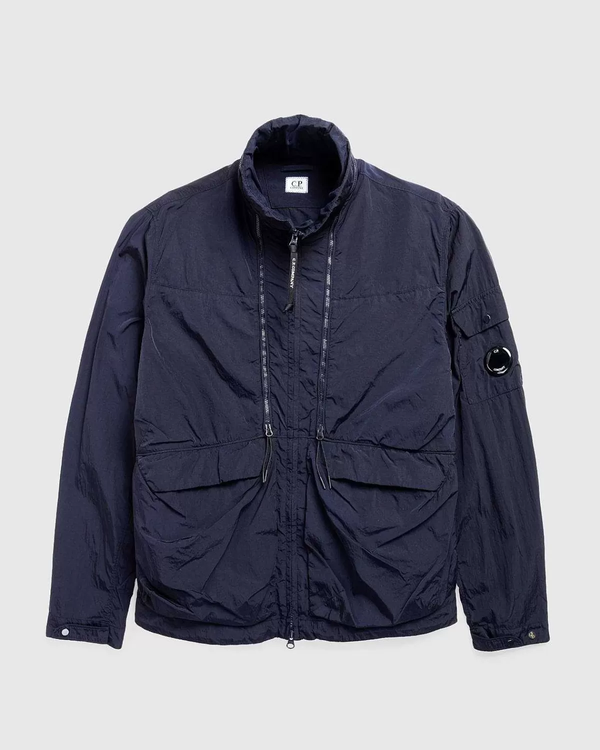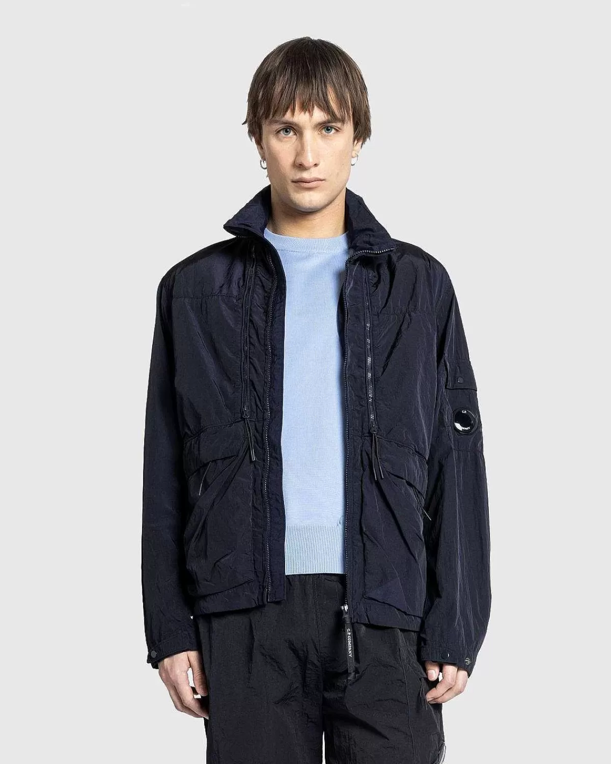 Den Mellemstore Jakke Er En Teknisk Overtøjsstil Produceret I Et Let, Men Holdbart Nylonstof. Den Har En Stående Krave Med En Blindhætte For Ekstra Beskyttelse, To-Vejs Lynlås Foran Og Manchetter Med Knapper, Der Giver Mulighed For Mindre Justeringer Af Stylingen. Karakteristiske Lynlåsdetaljer Er Indarbejdet På Forsiden Af Tøjet, Sammen Med To Lynlåslommer. Cp Companys Signaturlinseapplikation Påføres Derefter Den Venstre Ærmelomme For At Afslutte Designet.