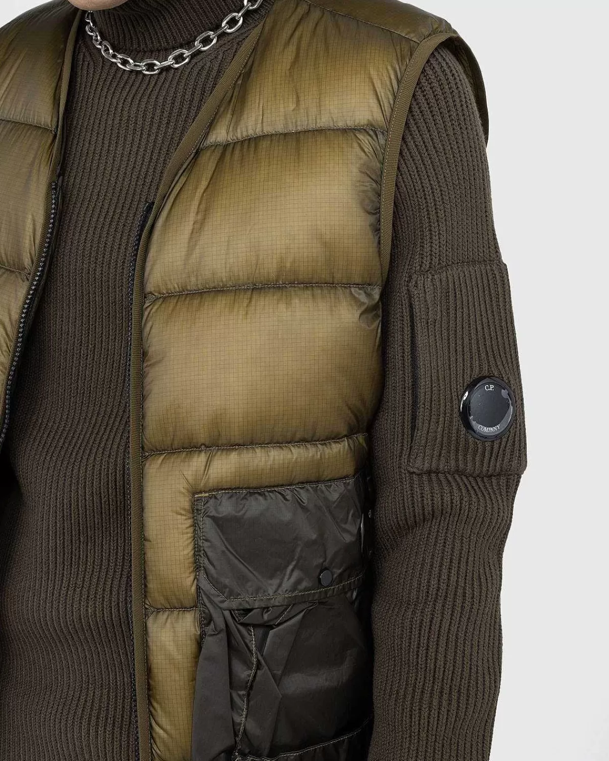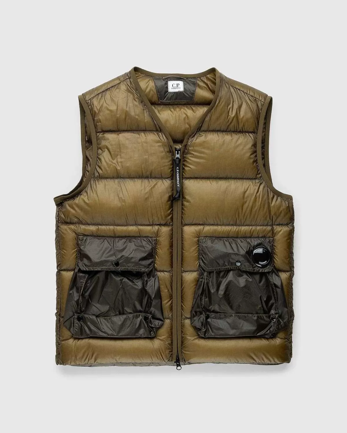 Dit Nye Go-To Layering-Stykke, Cp Company’S Quiltede Lynlåsvest Er Lavet Af Et Let, Men Holdbart Nylonmateriale Og Polstret Med Fjerdun For Øget Varme Og Komfort. To-Vejs Lynlåslukning Foran Giver Dig Mulighed For At Foretage Mindre Justeringer Af Stylingen, Da Tøjet Derefter Er Udstyret Med To Lommer Med Klapknap På Forsiden. Mærkets Signaturobjektivdetalje Er Påført Den Venstre Lomme For Definitivt At Markere Stilen.