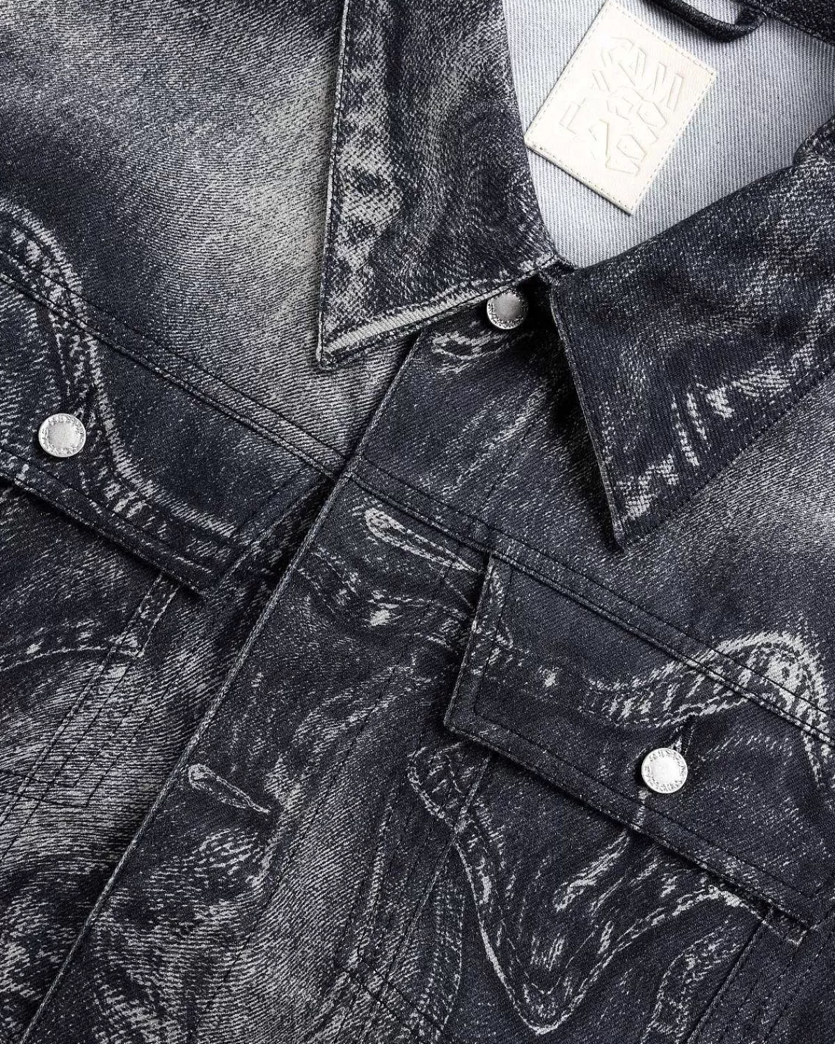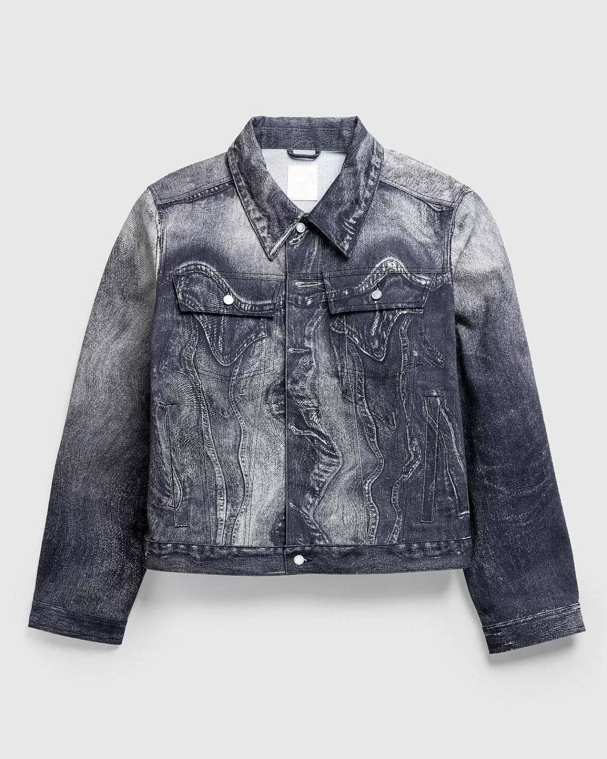 Denne Camperlab-Denimjakke Er Defineret Af Et Sæsonbestemt Kontrastfarveprint, Der Giver Den Et Modigt Urbant Look. Stilen Er Skåret Til En Afslappet Unisex Pasform Med Overdimensionerede Ærmer Og Faldende Skuldre. Bølgede Denimoverlays Dekorerer Overtøjsstilen, Der Er Afsluttet Med To Brystlommer Og En Klassisk Reverskrave.
