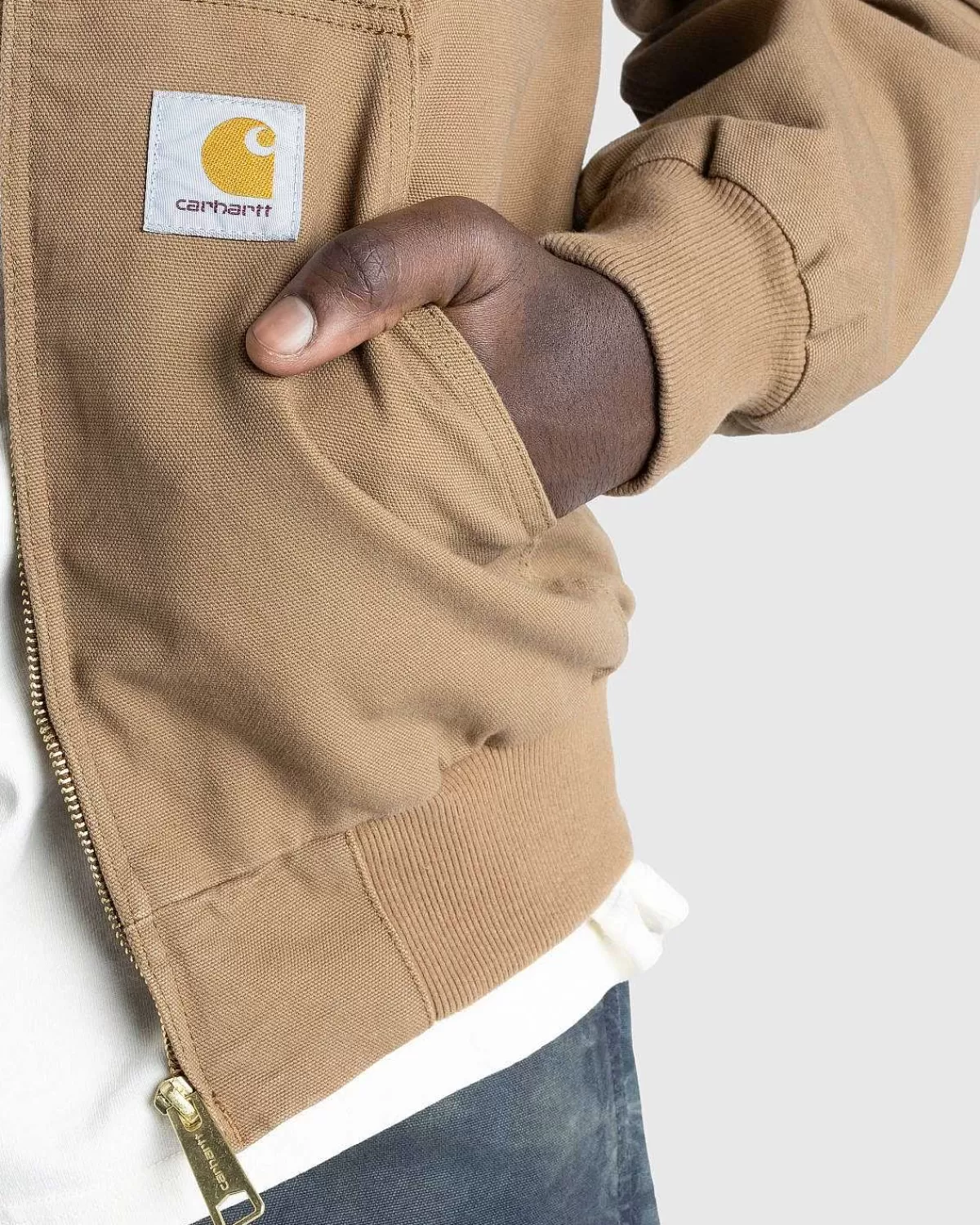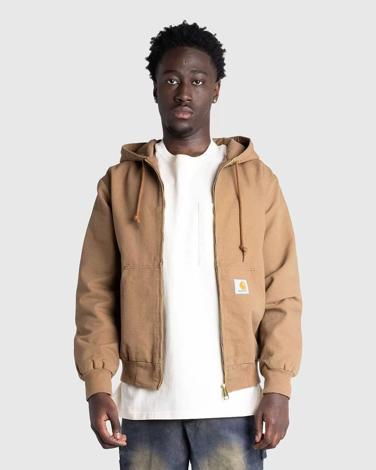 Den Aktive Jakke Er En Slidstærkt Overtøjsstil, Der Er Konstrueret Af Carhartts Karakteristiske Dearborn Canvas Af Økologisk Bomuld. Tøjet Skylles For At Skabe En Blødere Følelse Uden At Gå På Kompromis Med Holdbarheden. Bomuldspoplin Linjer Silhuettens Krop Og Nylon Linjer Ærmerne, Mens Ribstrikkede Manchetter Og Kant Giver Ekstra Isolering. Jakken Er Afsluttet Med En Kængurulomme Foran, Der Er Mærket Med En Lille Vævet Logoetiket.