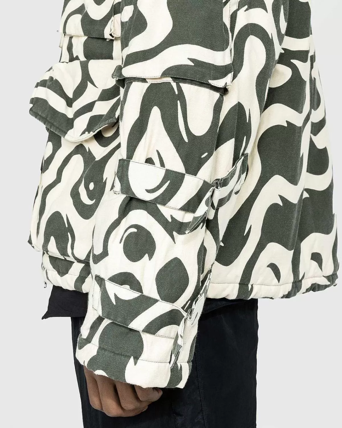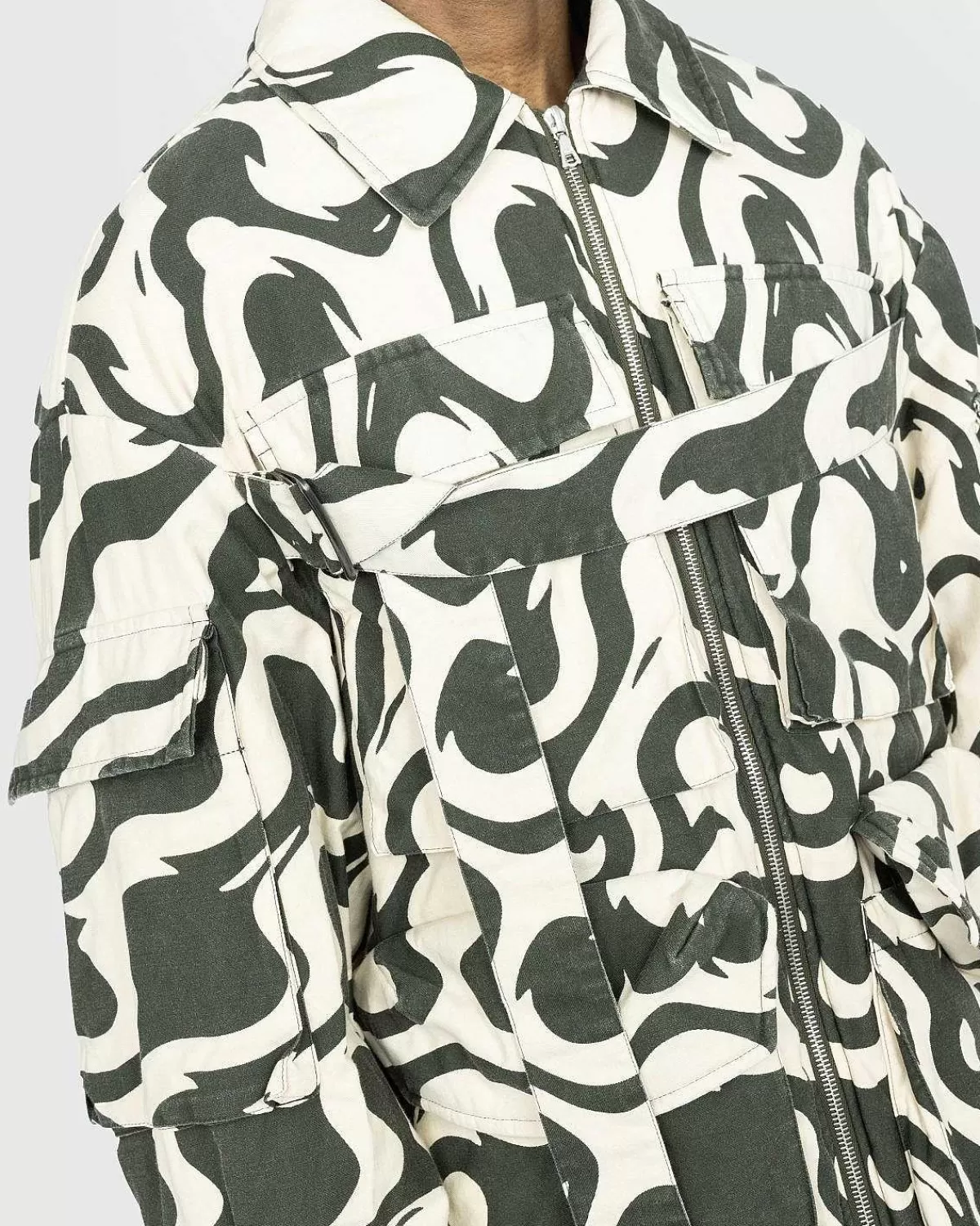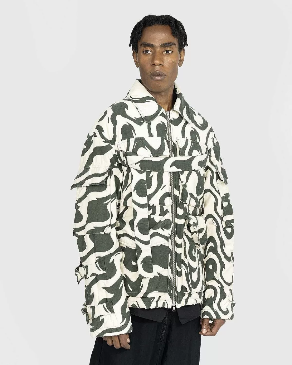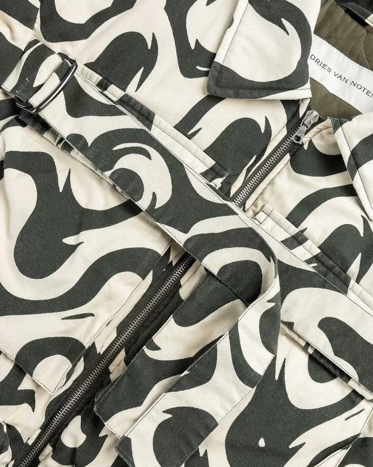 Vonac Bis-Jakken Er En Iøjnefaldende Dries Van Noten-Overtøjsstil, Der Viser Et Fængslende Motiv, Produceret I Et Bomuld-Polyester-Blandingsstof, Det Afslappede Tøj Er Udstyret Med Flere Klaplommer Foran Og På Ærmerne , Mens Den Er Detaljeret Med Justerbare Stropper På Brystet Og Ærmerne.
