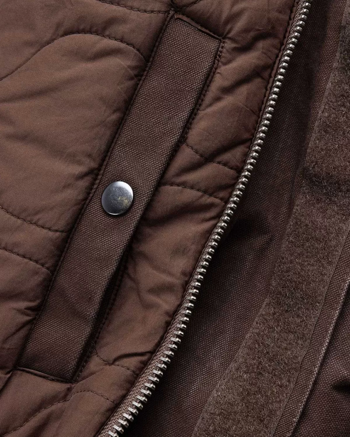 W2 Er Et Slidstærkt Look På En Klassisk Overtøjsstil. Bomberen Er Overvejende Fremstillet Af Bomuldslærred Og Har Været Udsat For En Enzymvask, Som Kan Føre Til Farvevariationer. Beklædningens For Og Hætte Er Quiltet, Mens Velcro- Og Ykk-Lynlåse Bruges Til Fastgørelse I Midten Foran. Lommer Er Derefter Indbygget I Taljen Og Brystet For At Fuldende Designet.