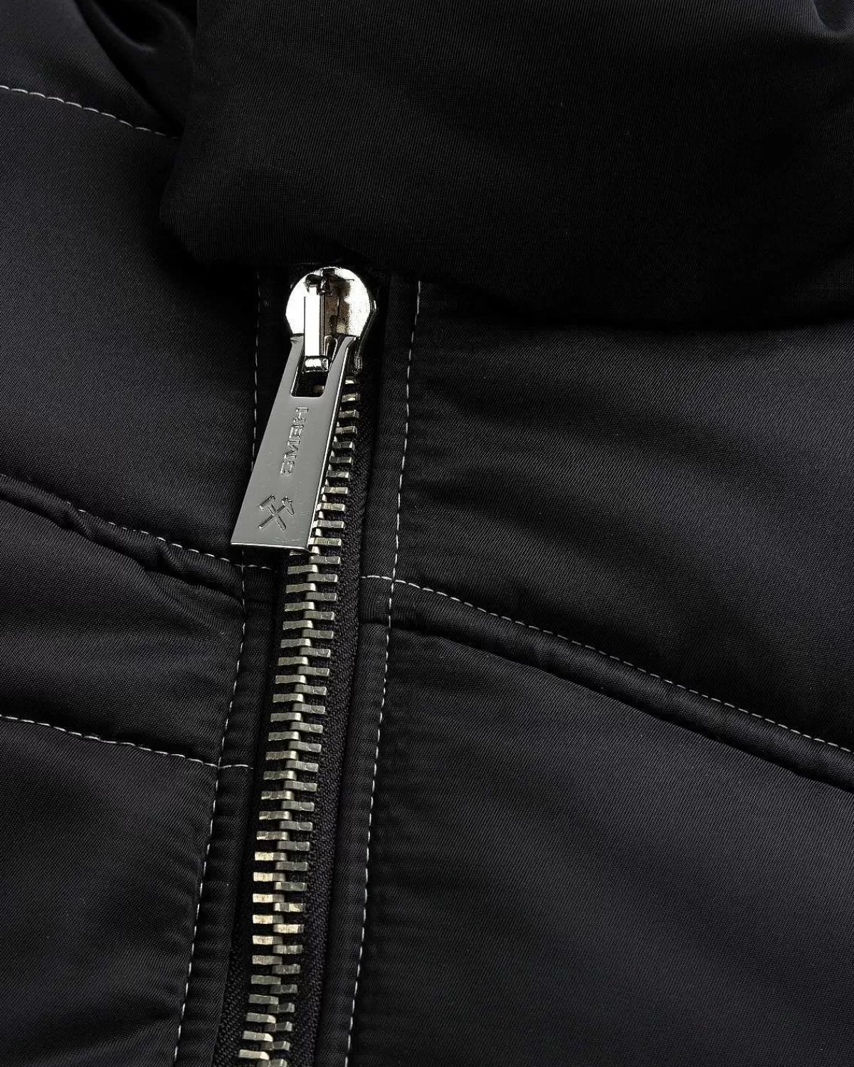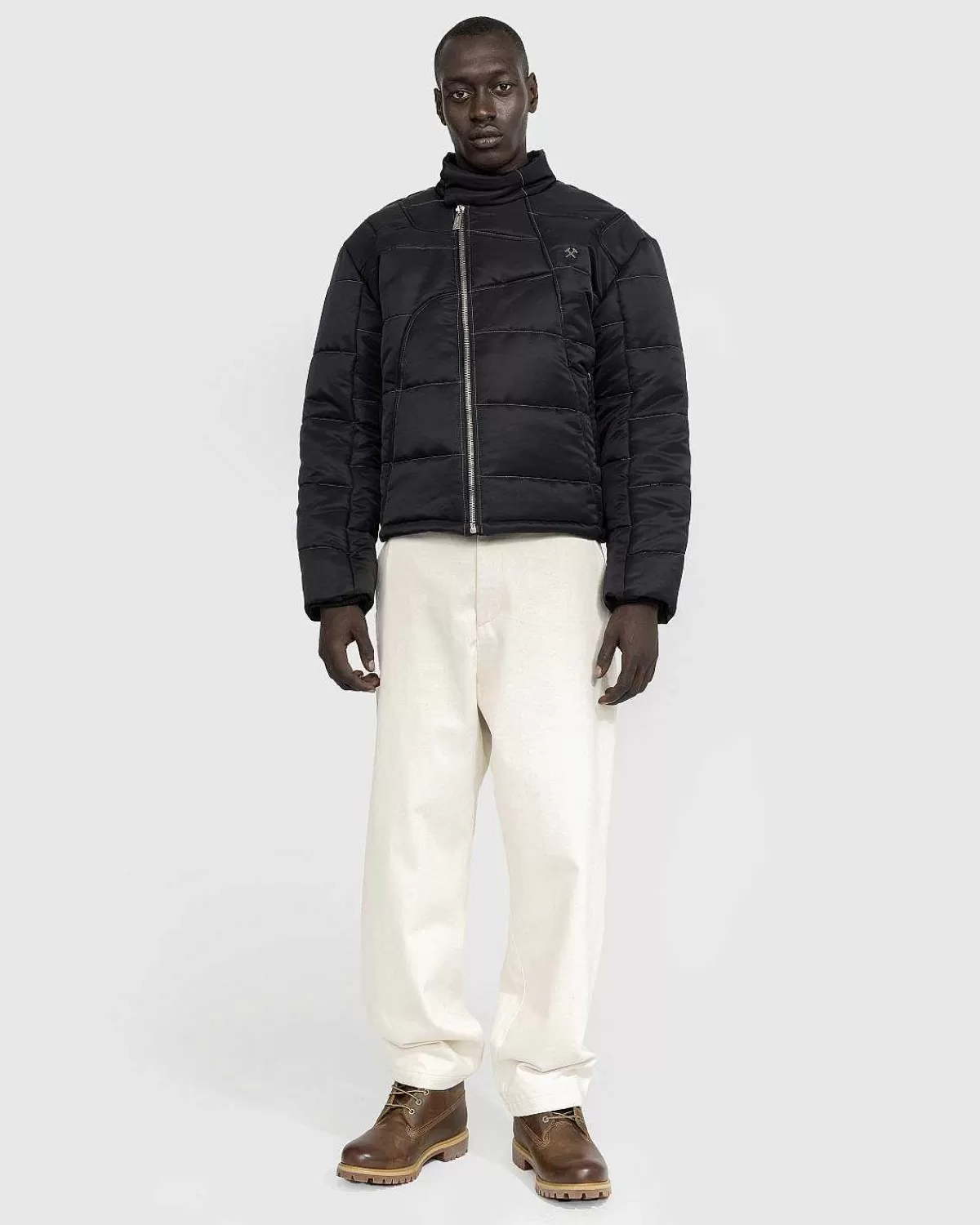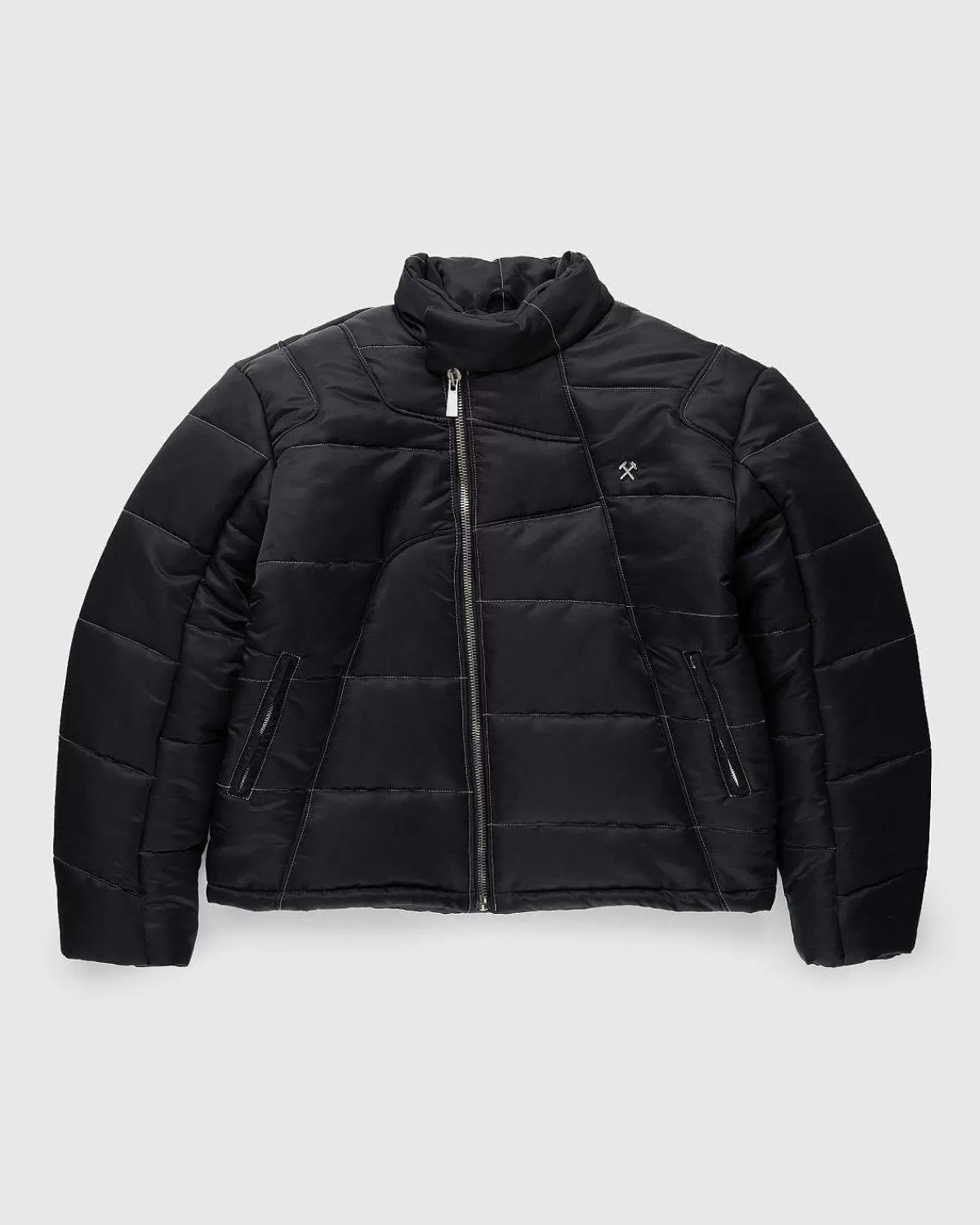 I Overensstemmelse Med Mærkets Etos Er Zaman Puffer-Jakken Lavet Med En Genbrugspolyesterskal Og Polstring I En Alsidig Helsort Nuance Med En Halvmat Finish. Jakken Er Detaljeret Med En Asymmetrisk Panelkonstruktion, Med En Diagonal Lynlås Med Et Præget Logo Og En Standkrave. Kontrastsømme Kan Findes I Hele Overtøjsstilen, Der Er Færdig Med En Justerbar Kant, Forlommer Og Gmbh Hardware På Brystet.
