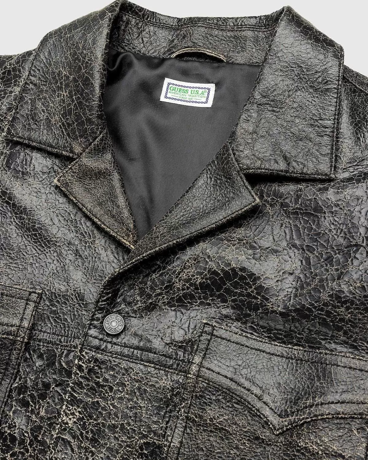 Overtøj>Guess USA Crackle Laederskjorte Jet Black Multi