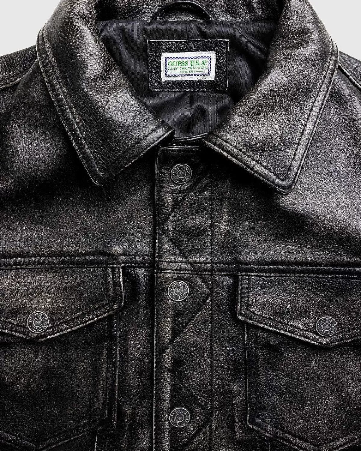 Som Navnet Bemærker, Er Denne Lædertruckerjakke Fra Guess Defineret Af Dens Distressed Detaljering Skabt Ud Fra En Vin…