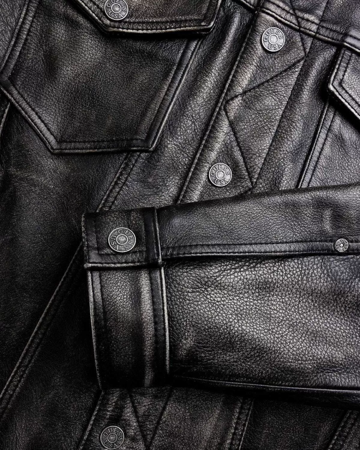 Som Navnet Bemærker, Er Denne Lædertruckerjakke Fra Guess Defineret Af Dens Distressed Detaljering Skabt Ud Fra En Vintage Blegningsteknik. 100 % Læder-Stilen Har En Klassisk Spidskrave, Knaplukning Foran Og Knapmanchetter, Med Flaplommer Indbygget På Brystet Og Stiklommer Lige Under. Knapperne Er Mærket Til Subtilt At Pynte Tøjet.