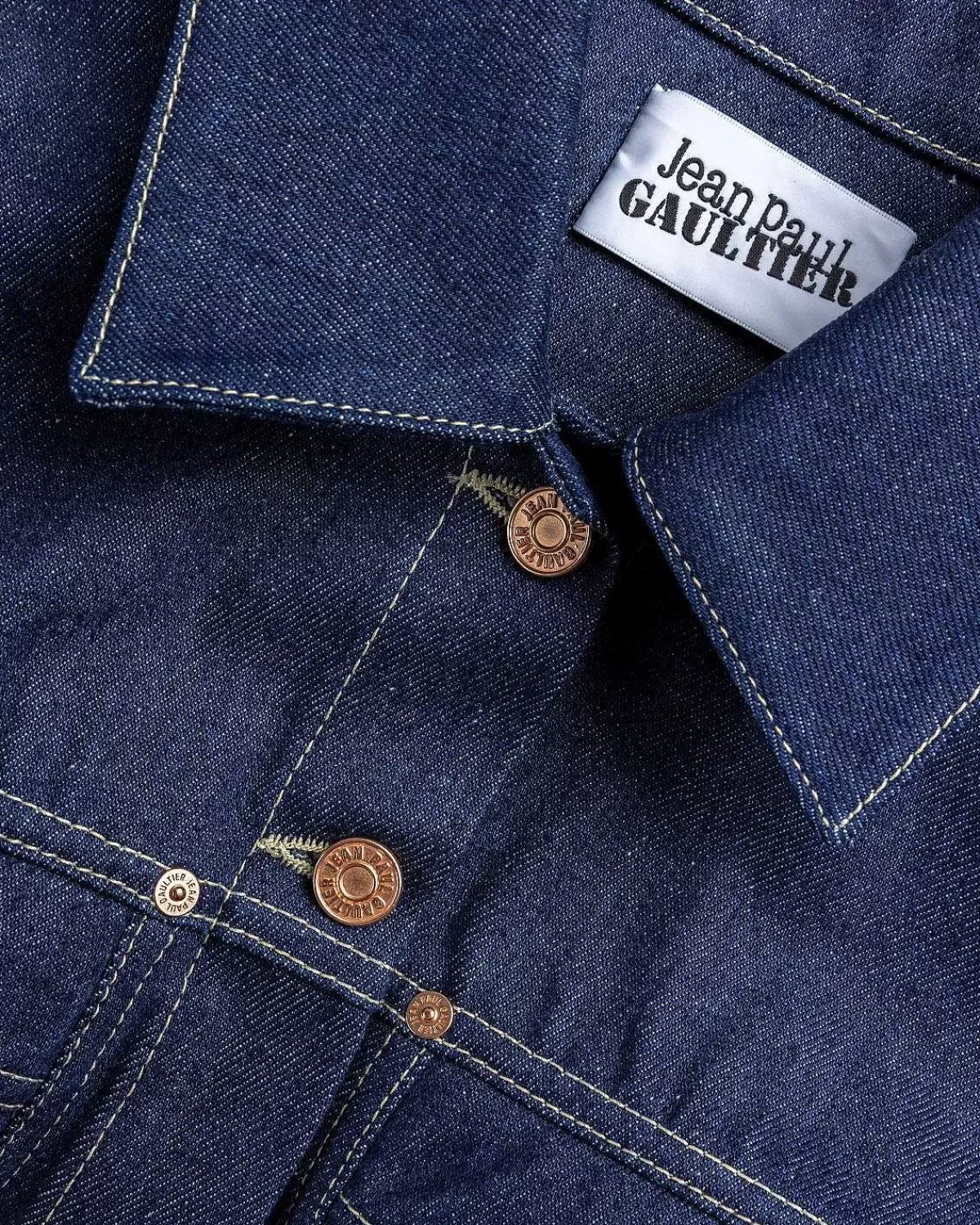 Denne Velkendte Stil Af Jean Paul Gaultier Er Inspireret Af Et Ikonisk Look Fra Den Legendariske Musiker, Madonna. Denimjakken Er Produceret I 100 % Bomuld Og Detaljeret Med Kontrastsyninger Hele Vejen Igennem. Den Har En Klassisk Spidskrave, Knaplukning Foran Og Knapmanchetter Og En Karakteristisk Brystdetalje. Håndlommer Er Indbygget På Forsiden Af Tøjet, Som Derefter Afsluttes Med Et Læderlogomærke På Bagsiden.