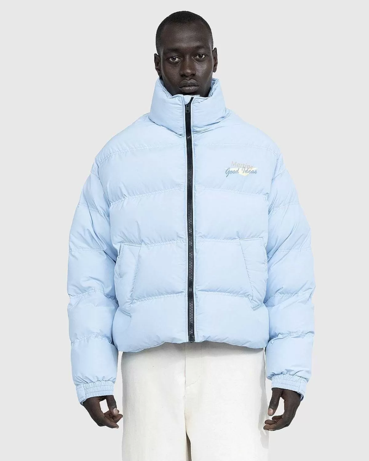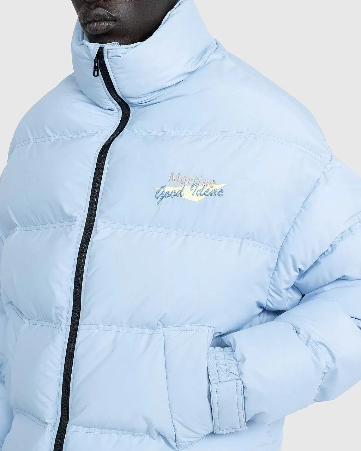 En Forhøjet Look På Den Klassiske Pufferjakke, Dukken Er Lavet Af Tør Nylon Og Har En Høj Hals Med To-Vejs Lynlåslukning Foran. Yderligere Detaljer Omfatter Elastiske Velcro-Manchetter Og Taljelommer Indbygget På Forsiden Af Silhuetten. Den Afslappede Beklædningsgenstand Afsluttes Derefter Med “Gode Ideer”-Broderi På Brystet Og Martine Rose-Branding På Bagkraven.