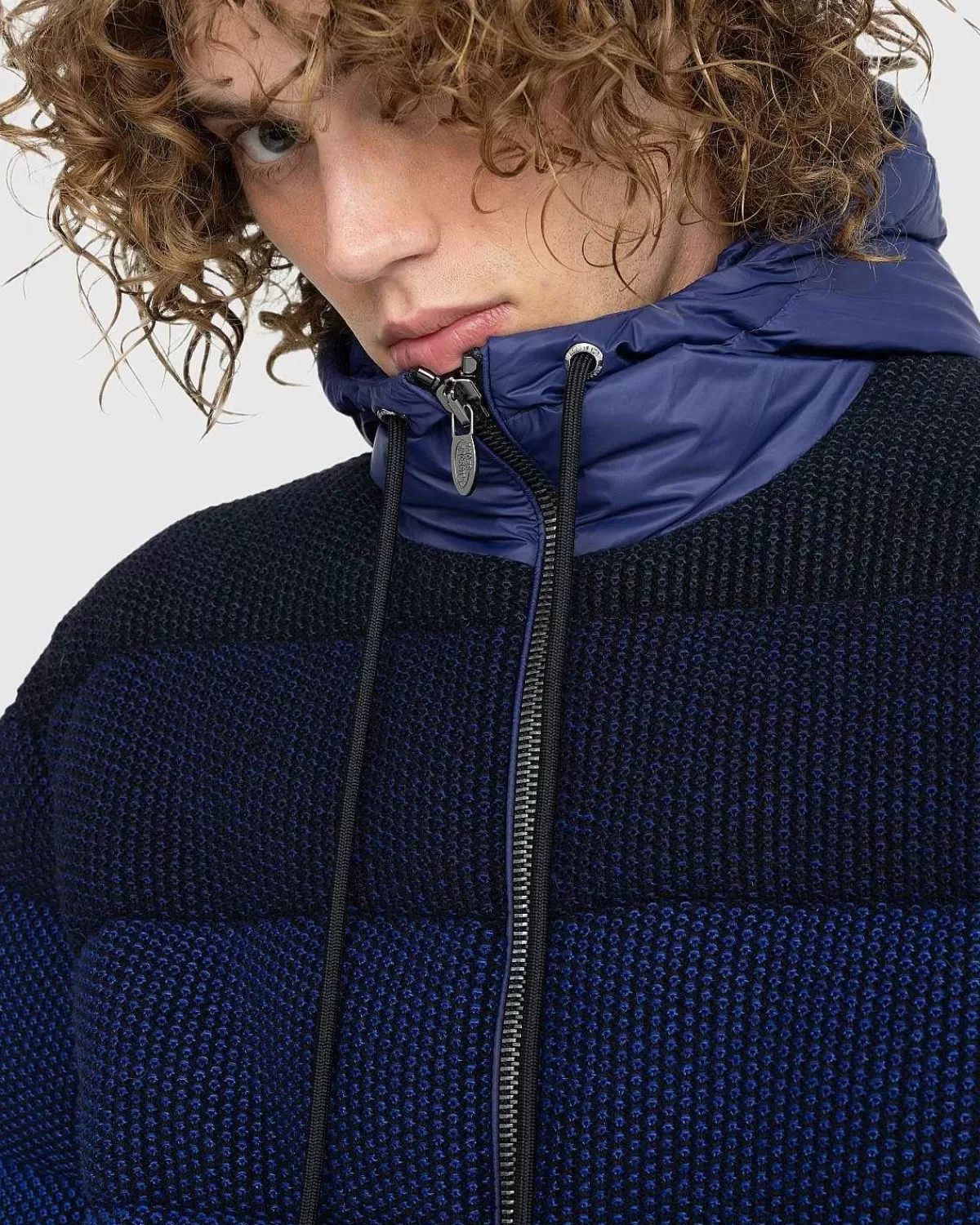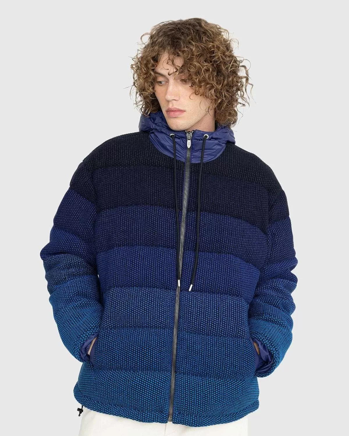 Missonis Dunjakke Med Hætte Fængsler Med En Iøjnefaldende Ombre-Effekt, Der Går Fra Nuancer Af Blå Til Sort. Vinter…