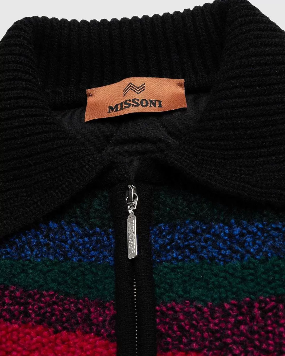 Denne Flerfarvede Missoni-Bombefly Vil Øjeblikkeligt Sprøjte Levende Energi Ind I Din Koldtvejrsgarderobe. Den Afslappede Jakke Er Fremstillet Af Blødt Og Isolerende Jomfruuld Og Fremviser Et Sjovt Stribemønster, Mens Den Har Ribstrikkede Kantlister Og To Sidelommer.